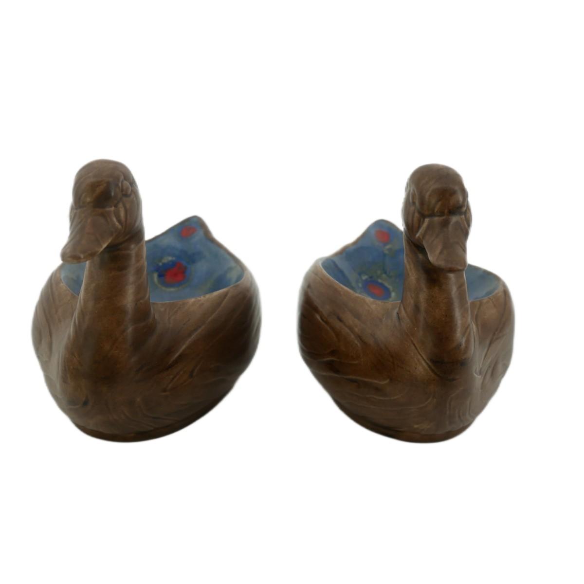 Two vintage 1973 duck trinket jewelry dishes. Hand-painted and signed on bottom. Each measures 6" x 3" x 3", total weight 1 lb. No issues found!