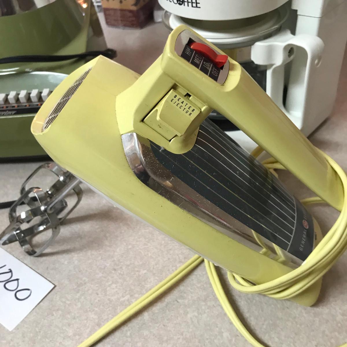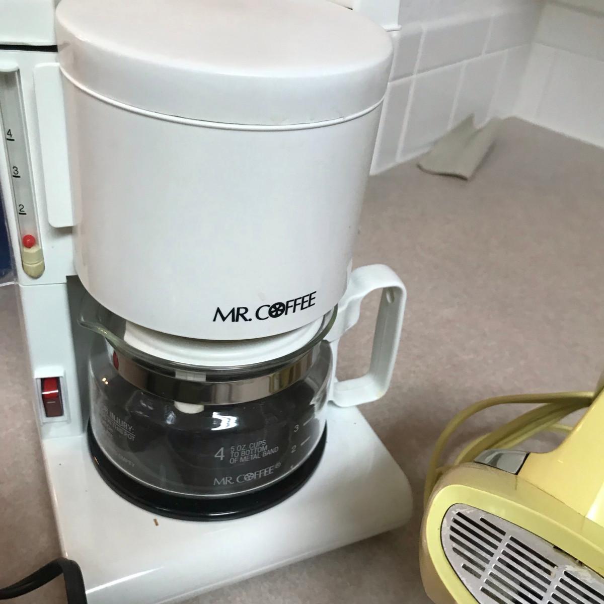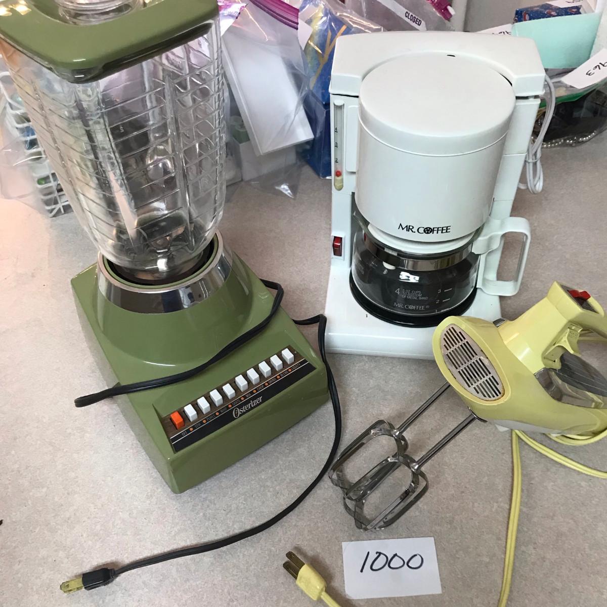 Blender (Avocado Green w/ Glass pitcher), Mixer (yellow, harvest gold), New Mr. Coffee. All work!