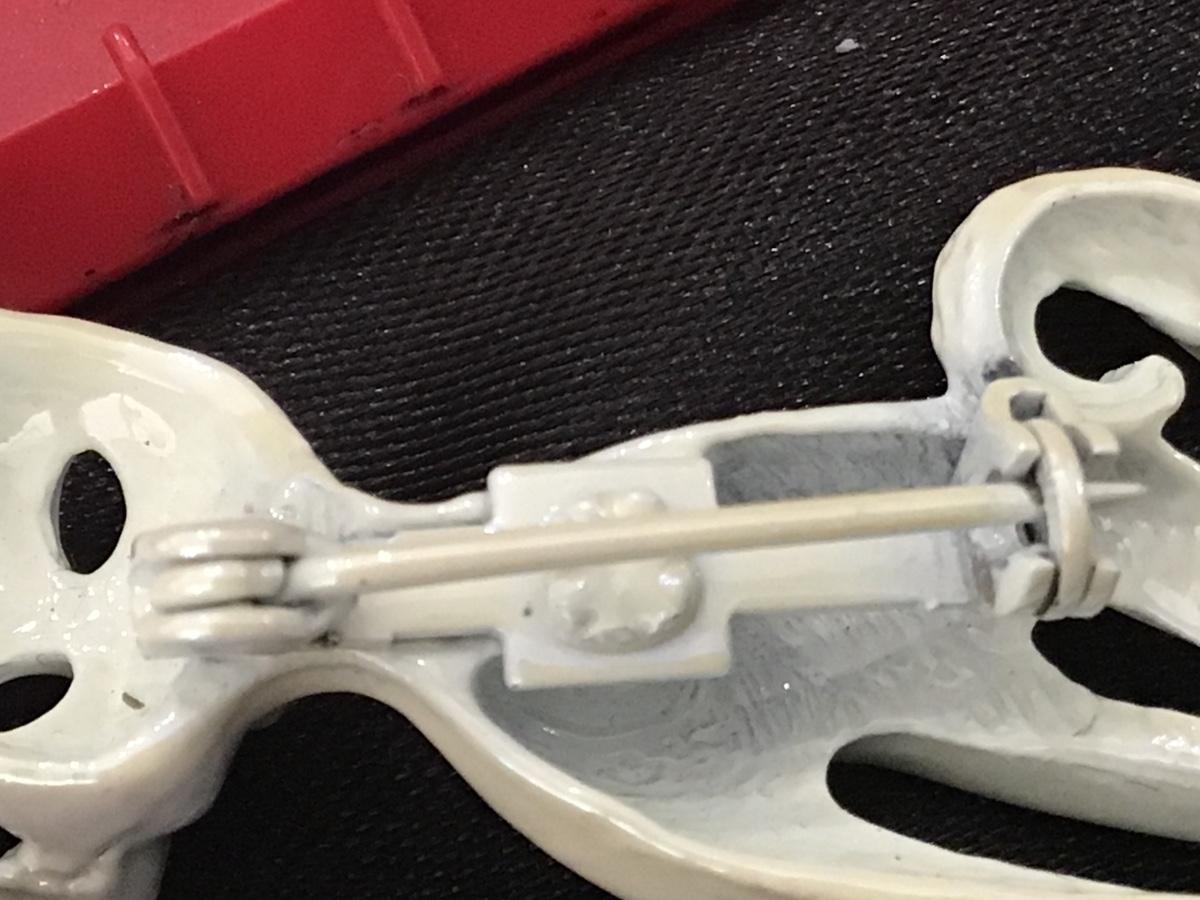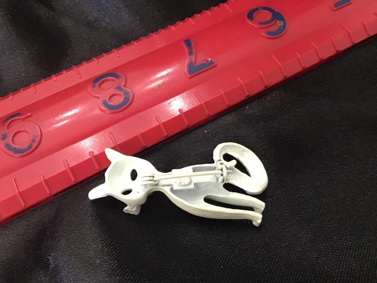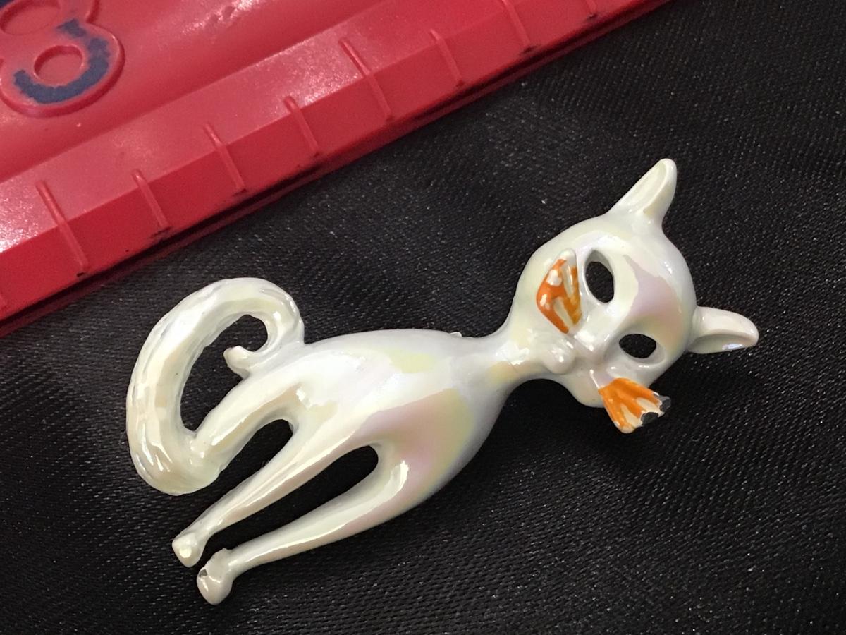 VINTAGE 70's PEARL WHITE ENAMEL SITTING CAT BROOCH PIN