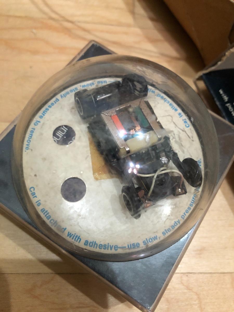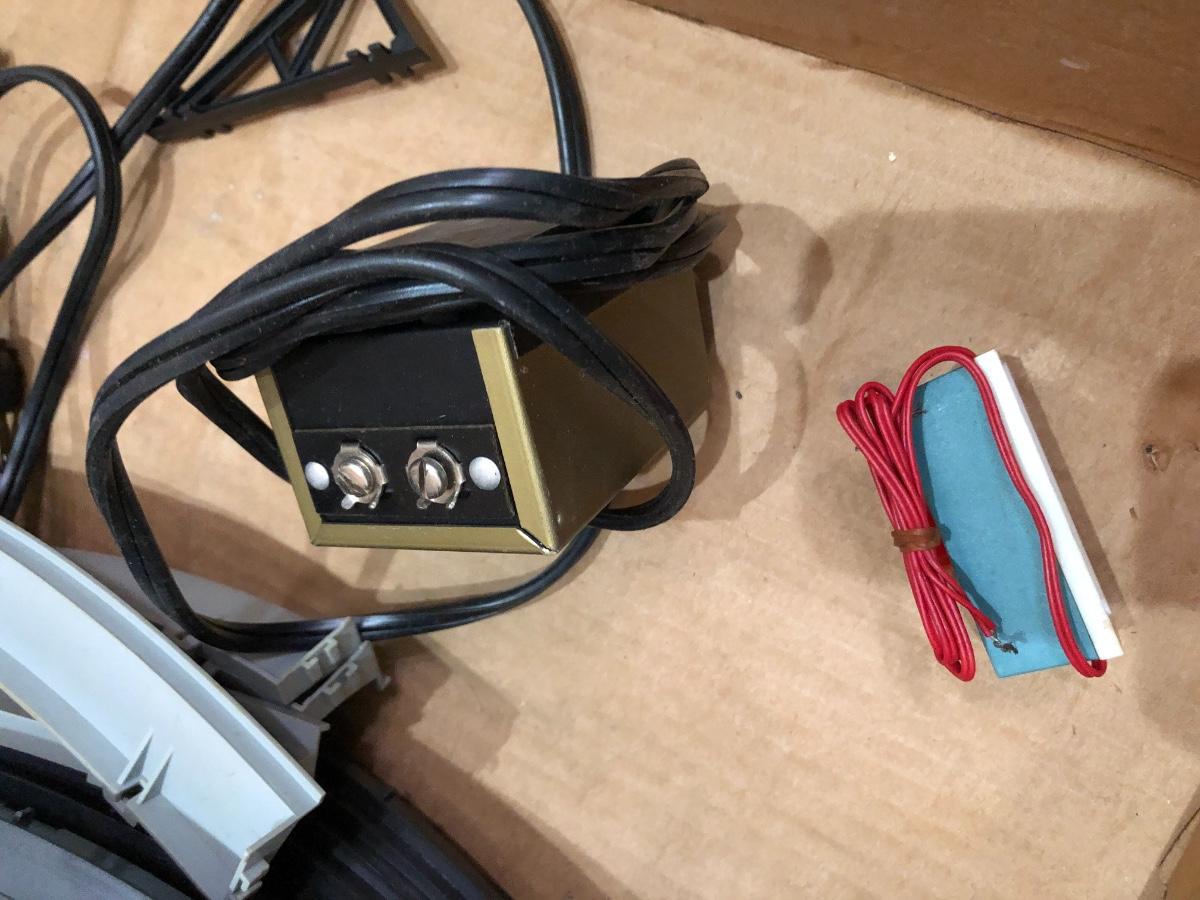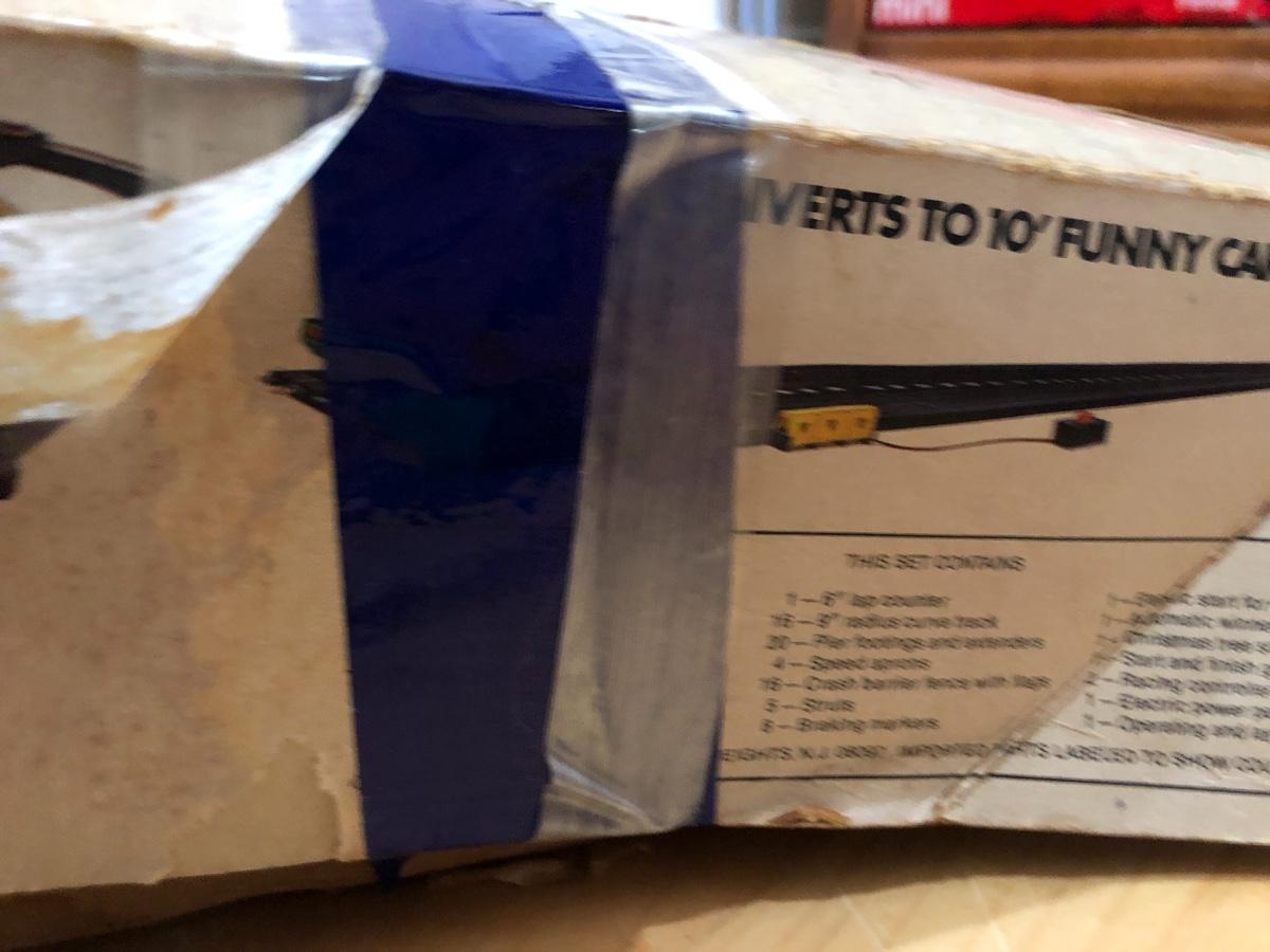 All items are sold as is, as found in the estate. Please see all photos for content, measurements and condition. This item is untested due to age of electrical plug. Set includes 8 cars and 10 car shell / body covers.