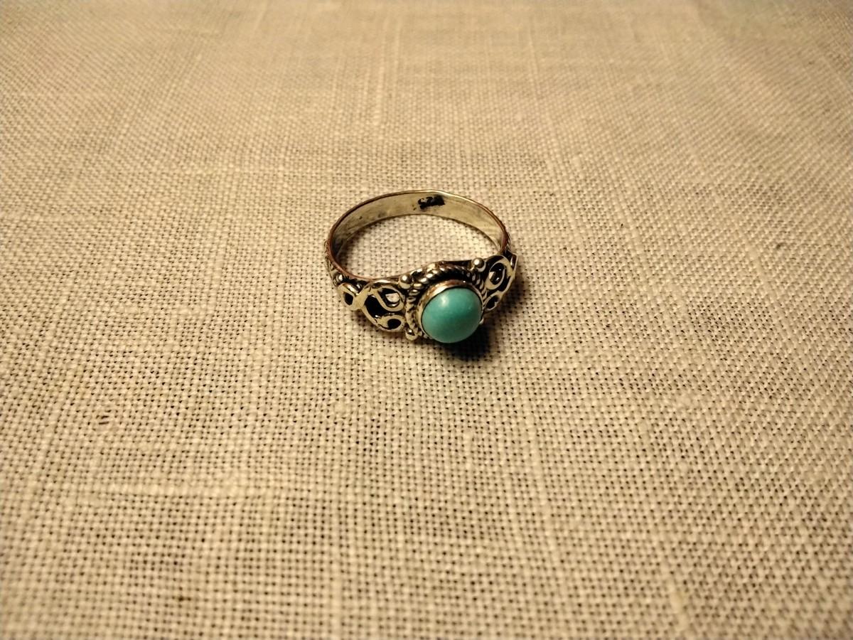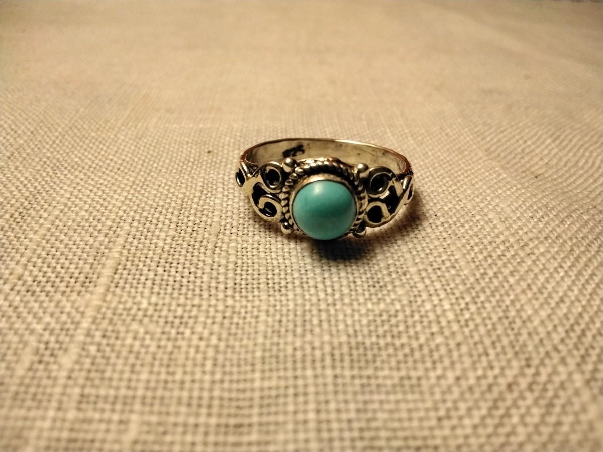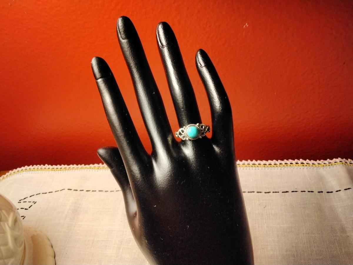 Vintage .75ctw Blue Turquoise Cabochon Silver Ring Size 7.50