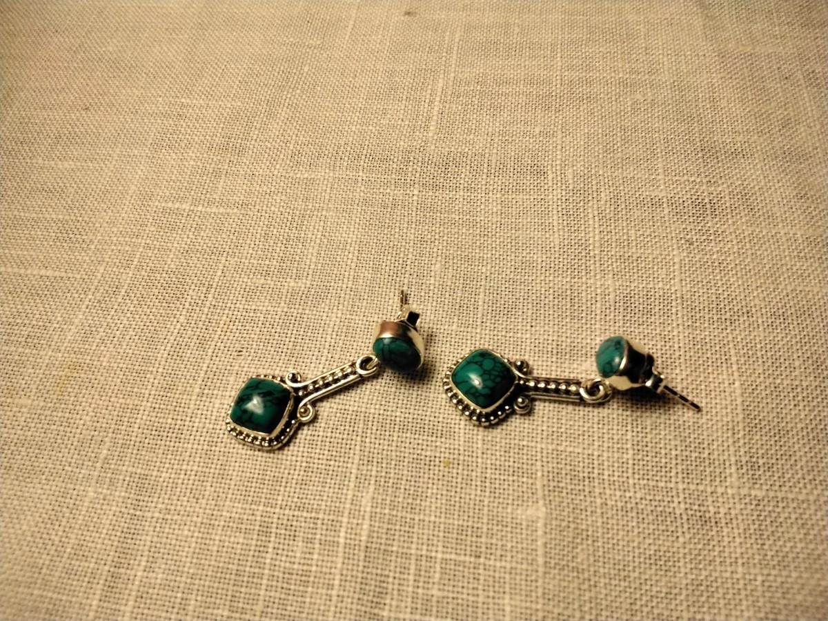 Vintage 7.70ctw Blue Turquoise 925 Sterling Silver Earrings