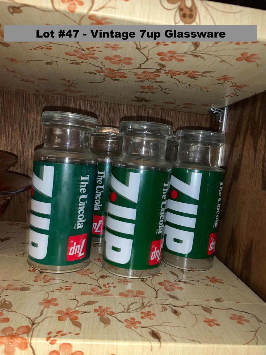 Vintage 7-Up Pedestal Drinking Glasses, 6 Pieces