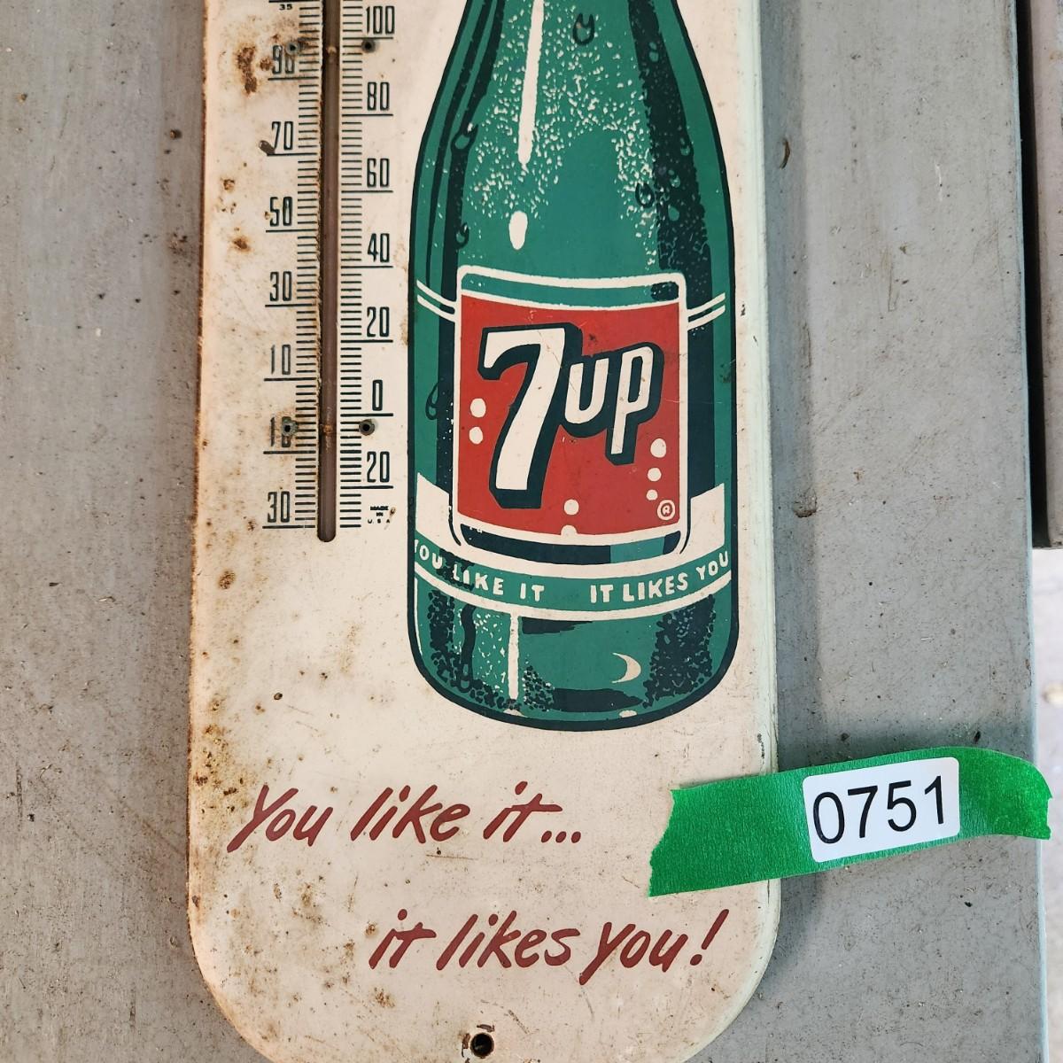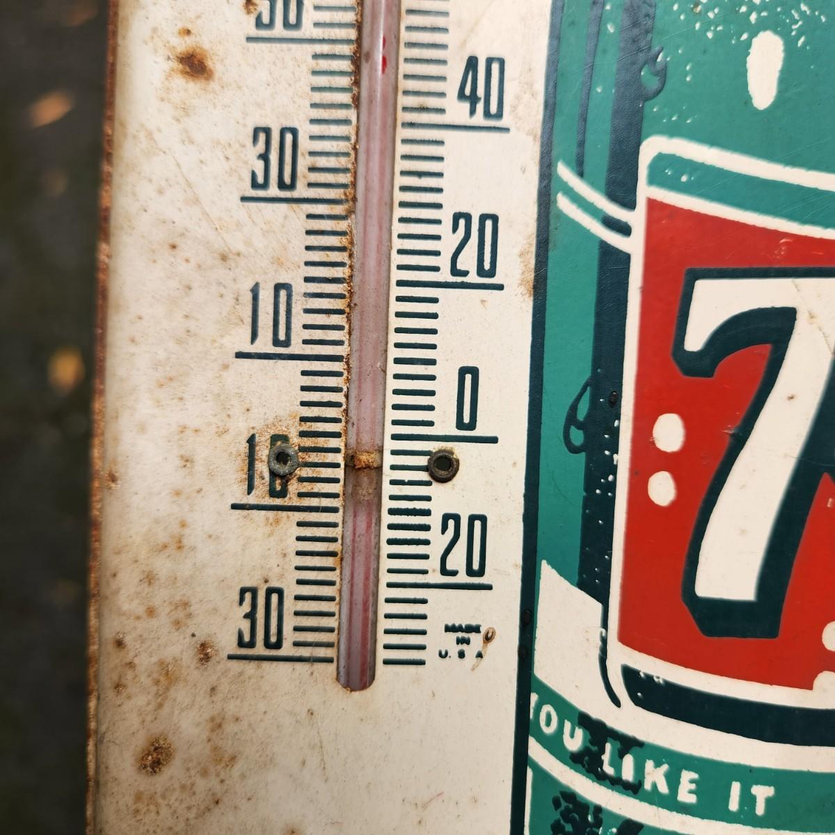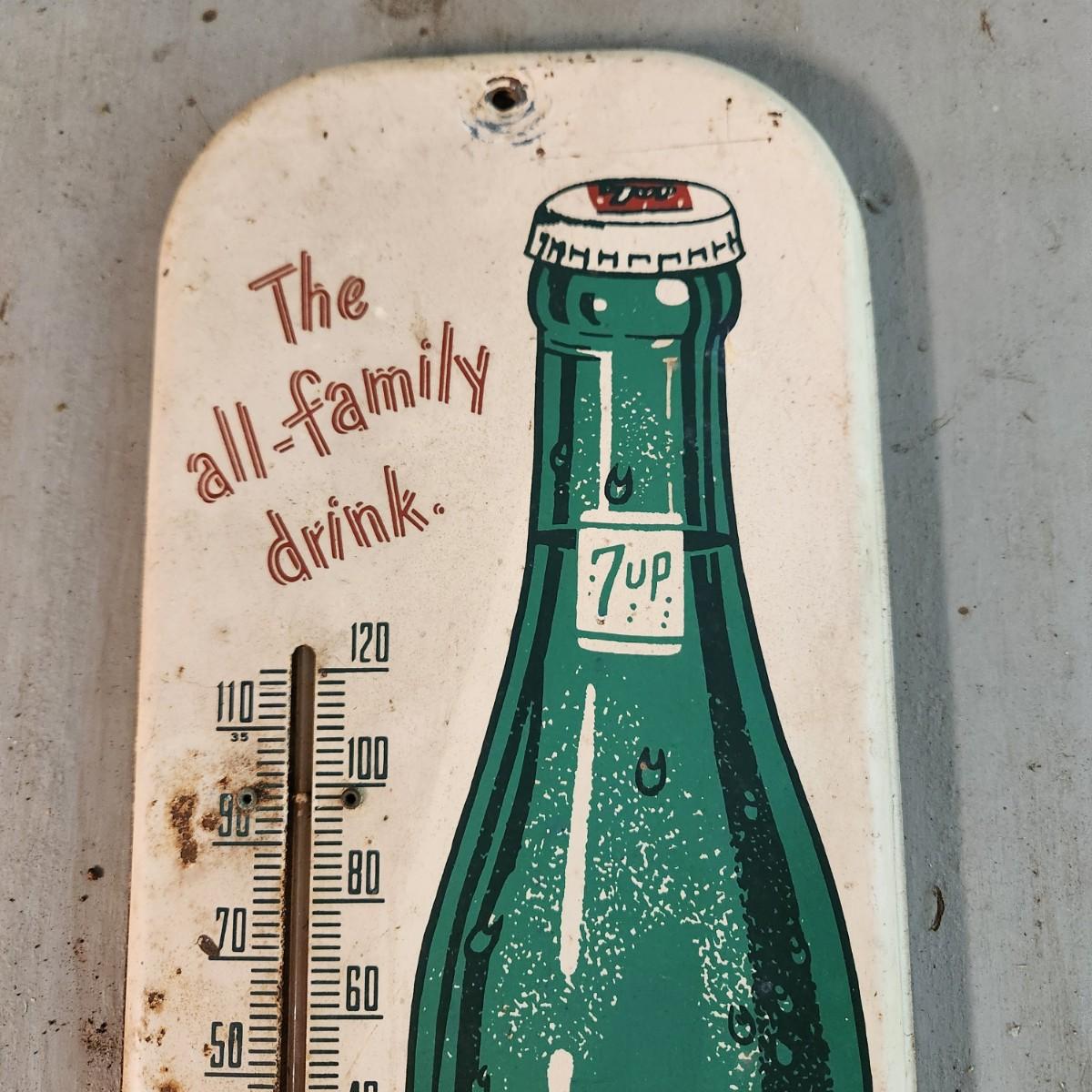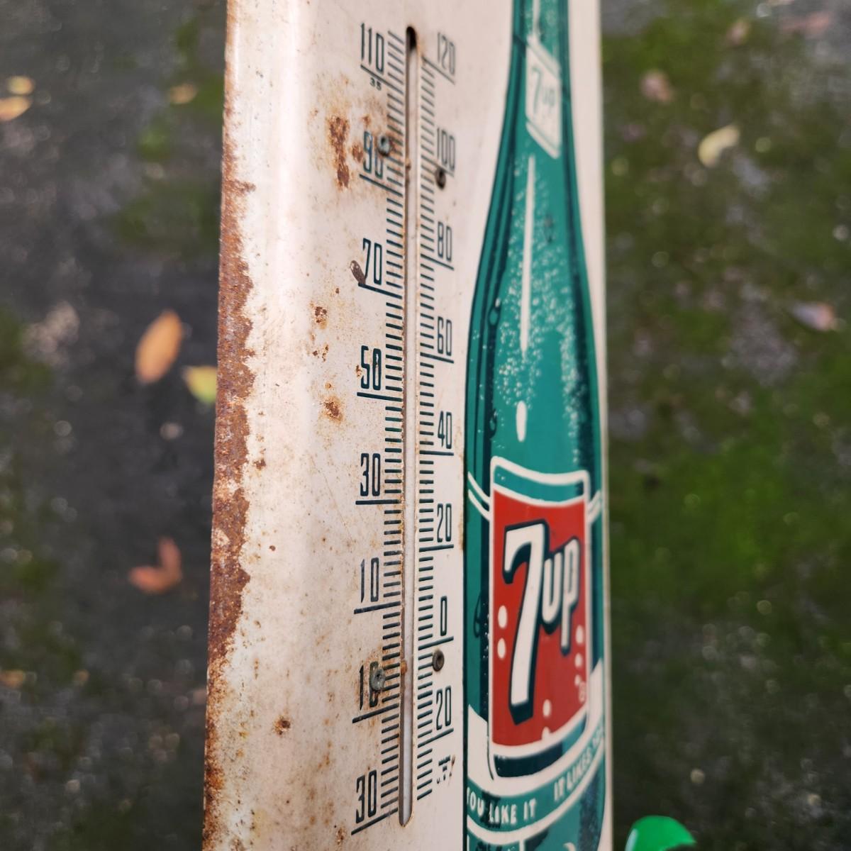 Vintage 7Up Soda Pop Metal Sign w Thermometer