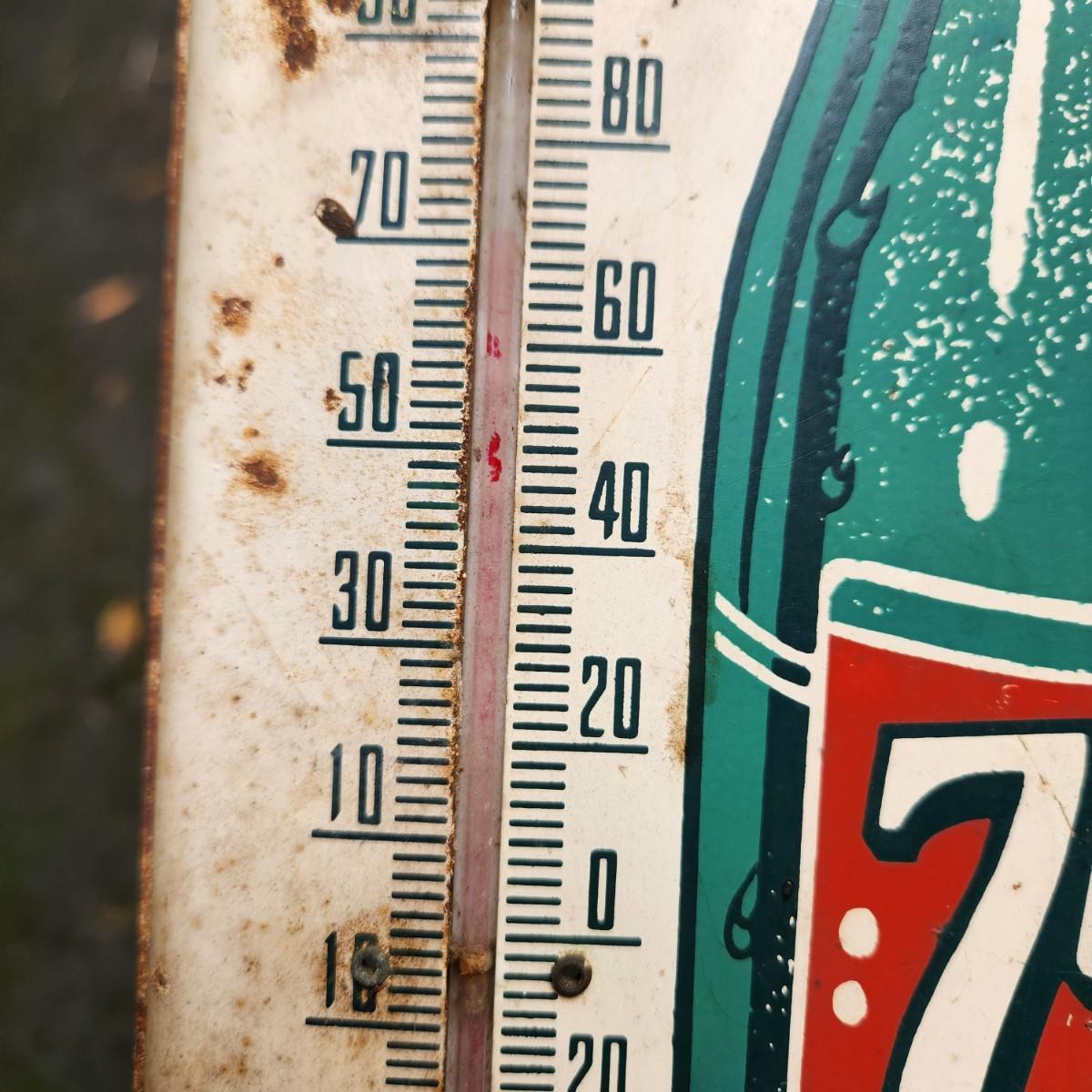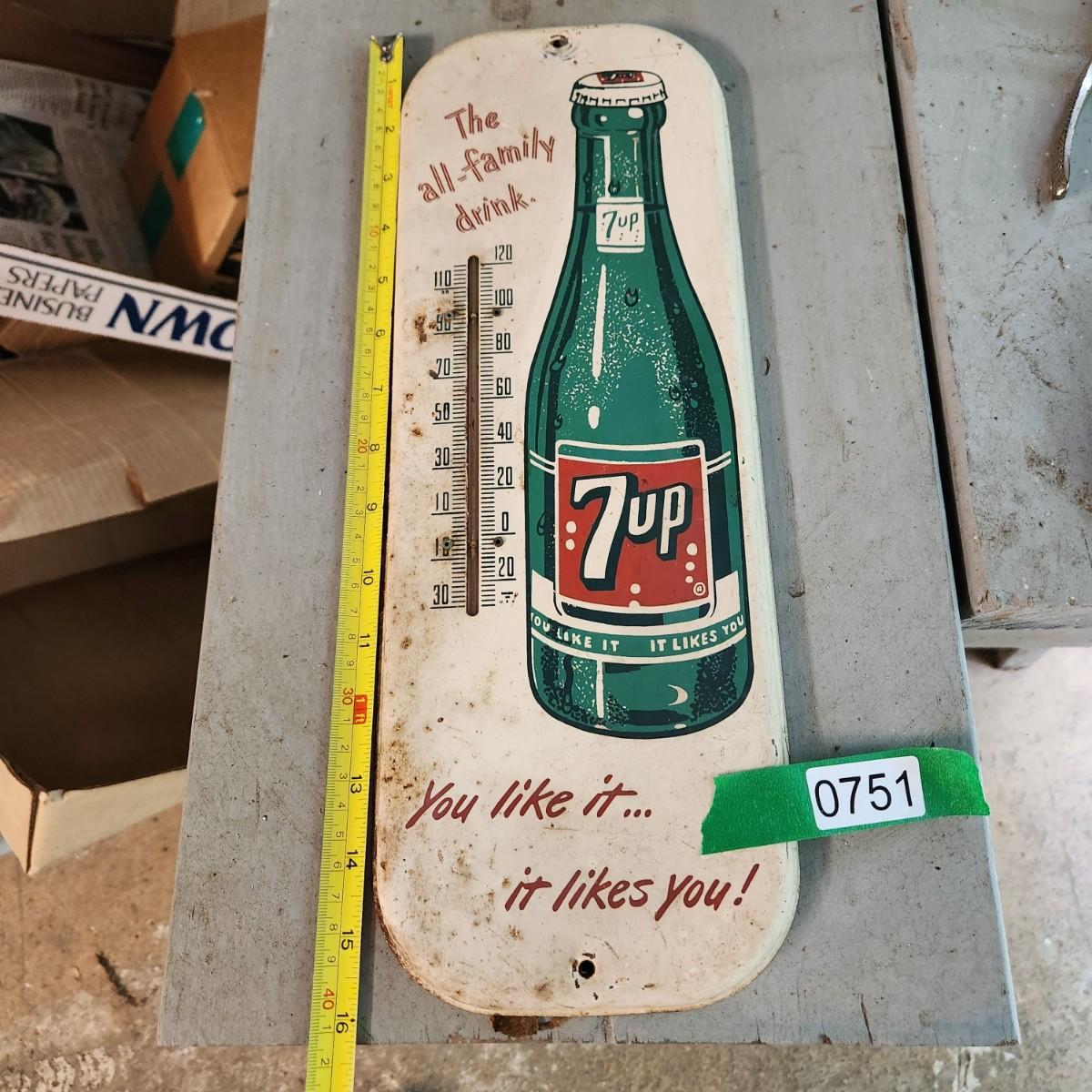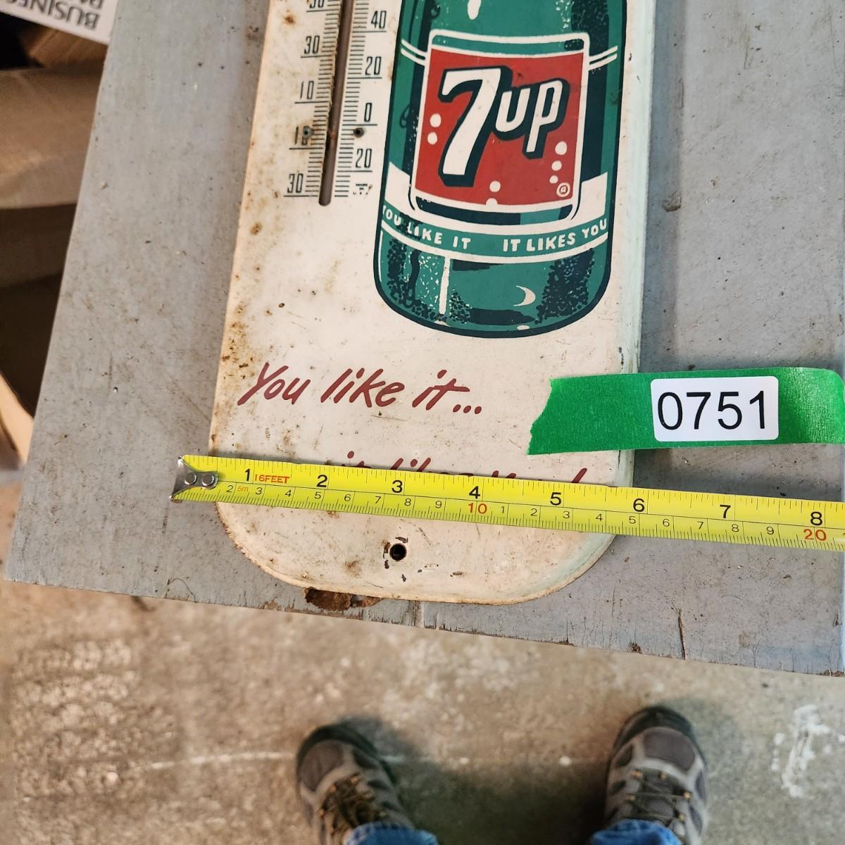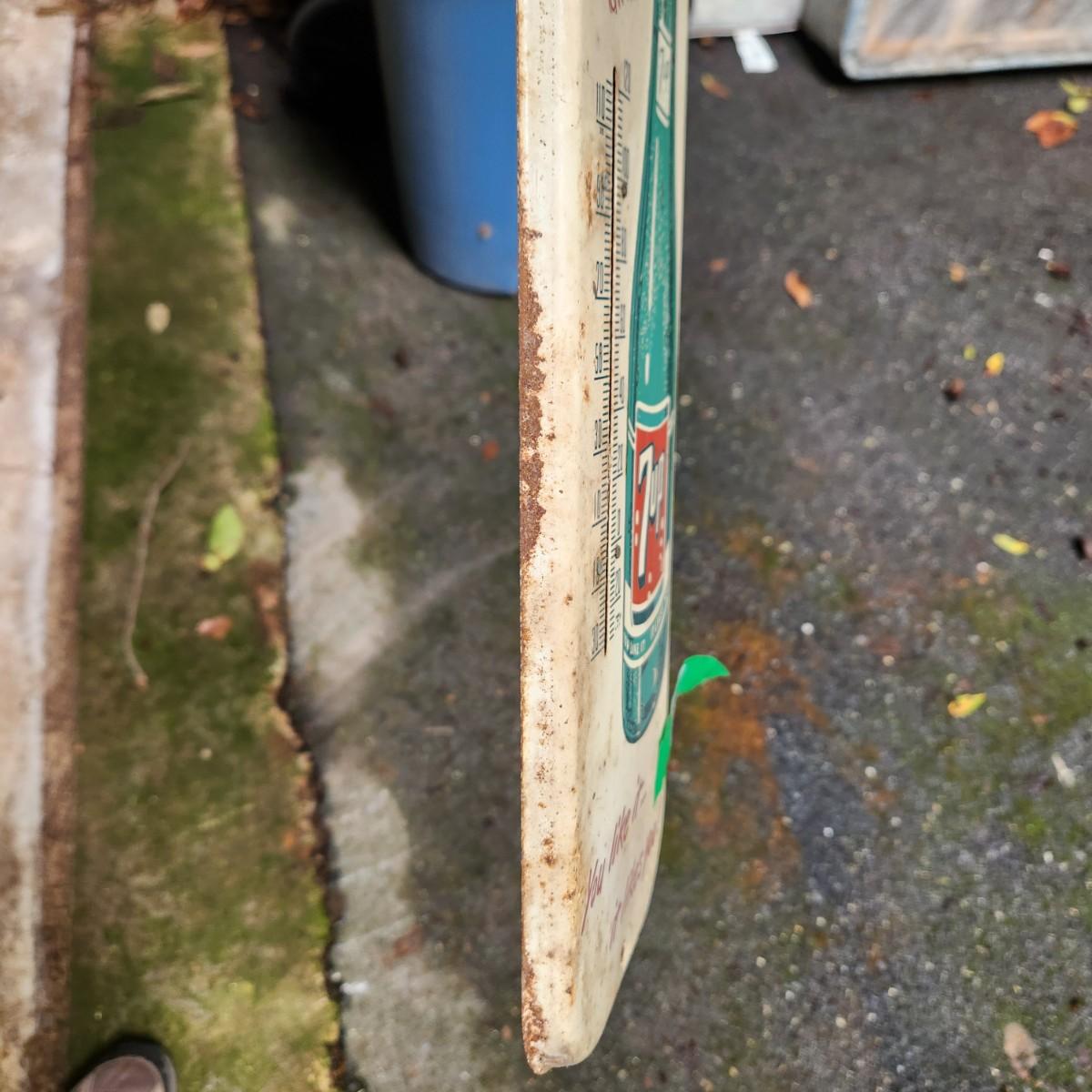 Vintage 7Up Soda Pop Metal Sign w Thermometer