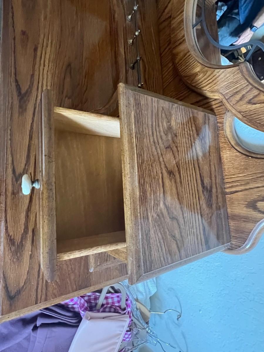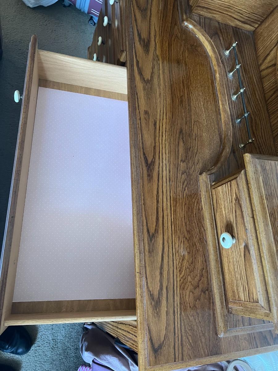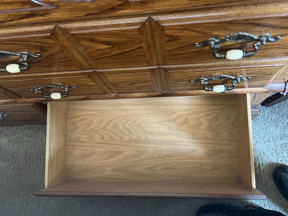 Vintage 8 Drawer Dresser with Two Drawer Mirrored Hutch. In good condition. Over 6' total height, hutch does come off dresser. **Off site in Brea, owner downsizing. Pick up will be as early as July 30th at 2pm, must be scheduled before the 29th.**