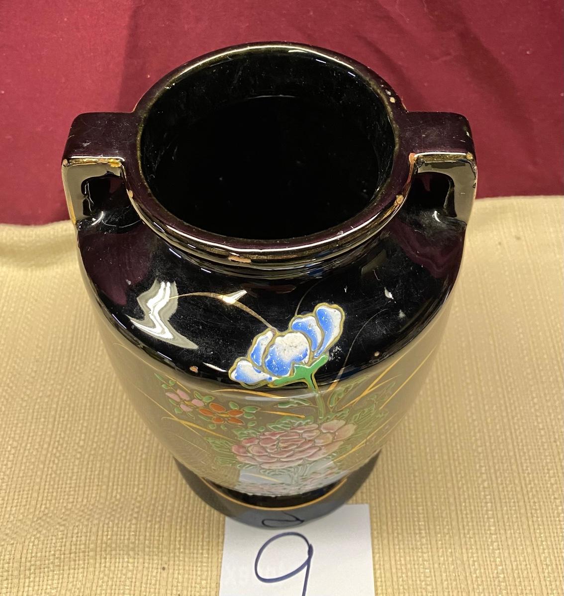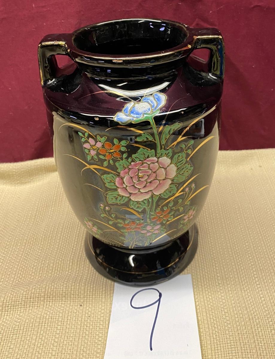 Vintage 8” Hand-painted Japanese Vase w/Handles