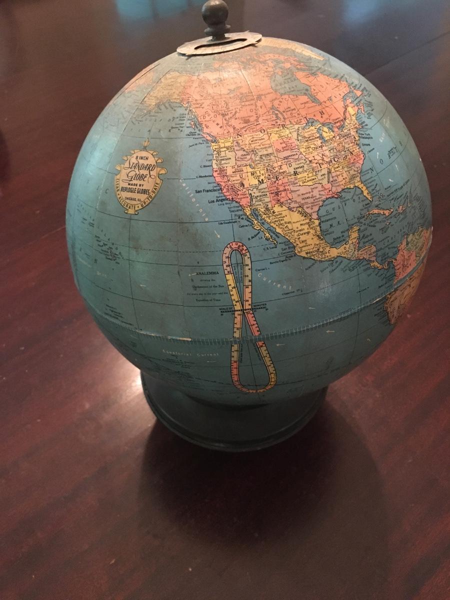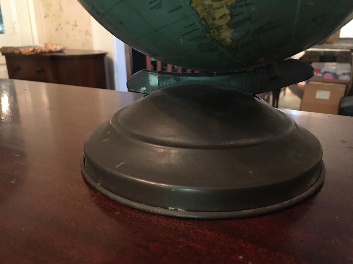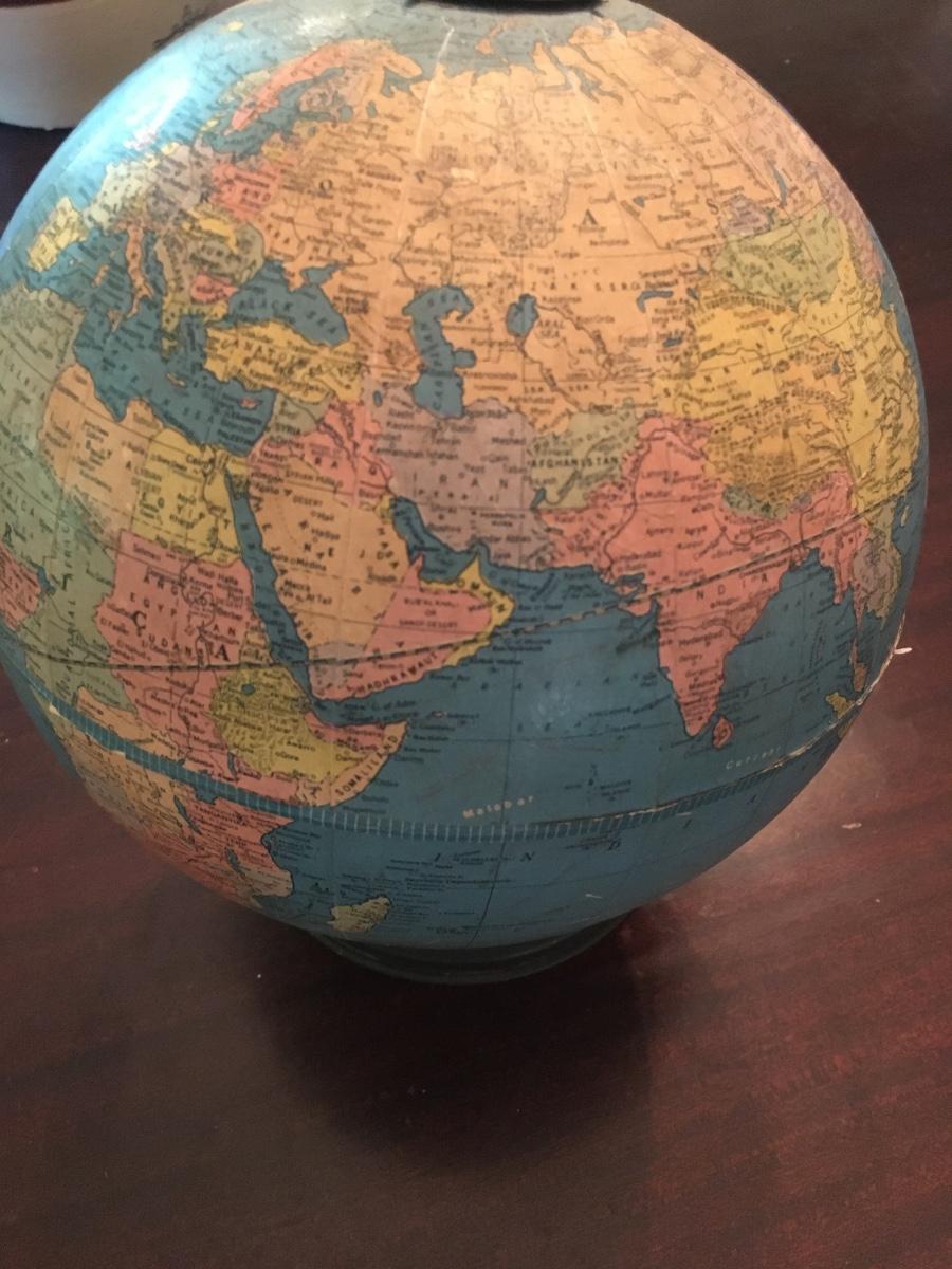 Globe from by gone days featuring countries that have been renamed more than once. Dusty but will clean up nice! No signs of damage or global warming