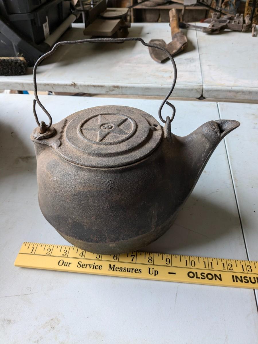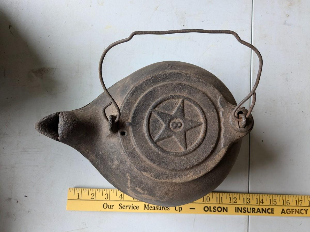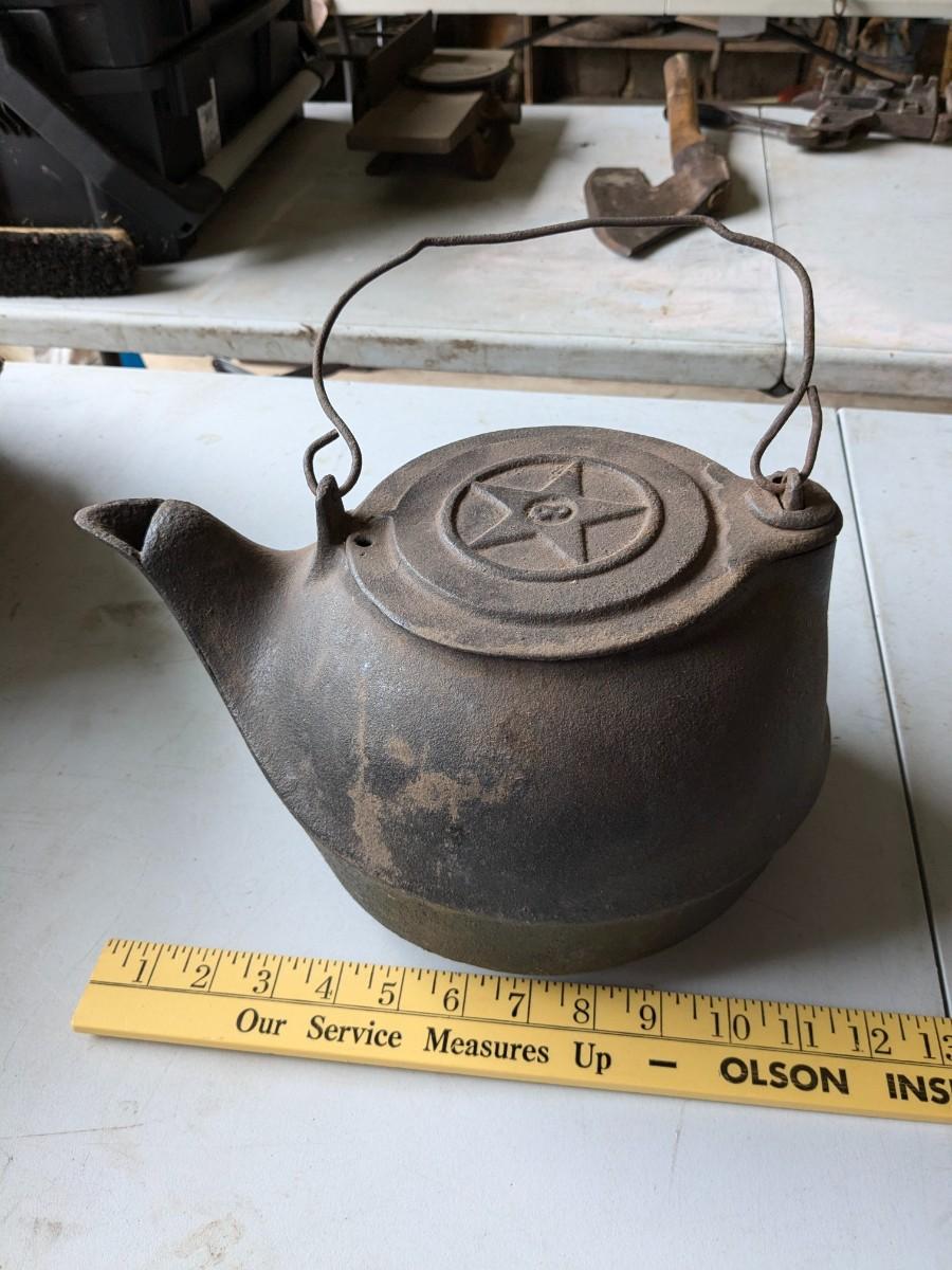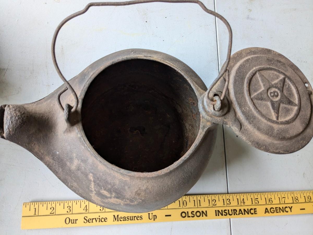 Vintage #8 Star Cast Iron Tea Pot Kettle with Swivel Lid