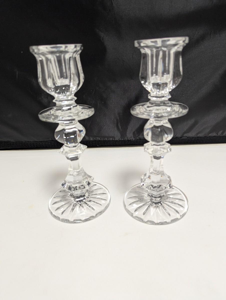Vintage 8" Tall USSR U.S.S.R Soviet Russian Gusev Crystal Taper Candlesticks #16