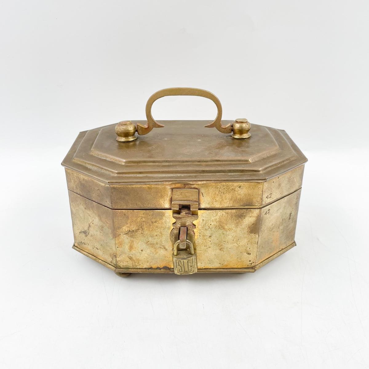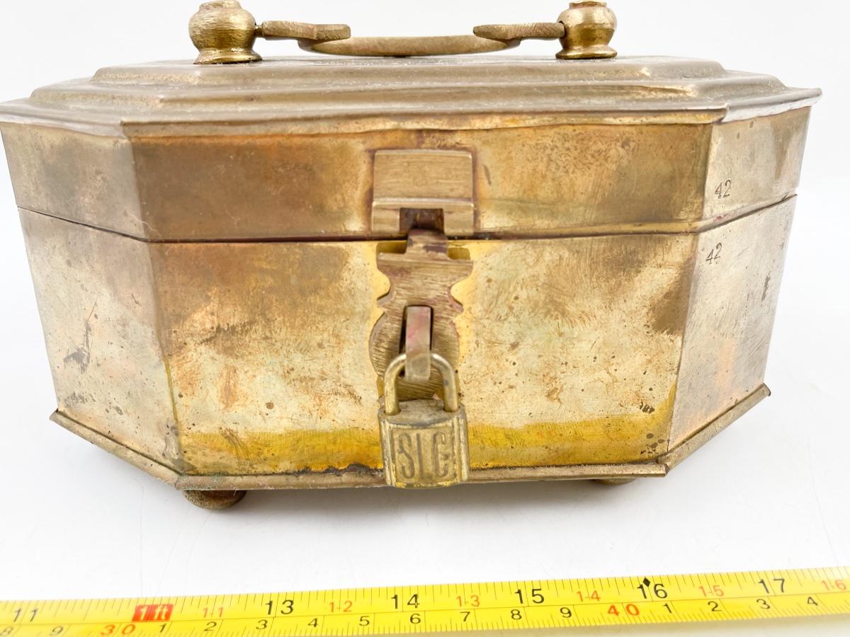 VINTAGE 8” X 6” BRASS HETEL BOX - LATCH BROKEN