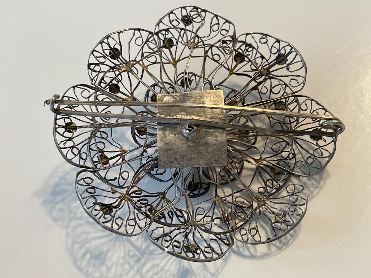 Vintage .800/.900 Silver Filigree Flower Pin 2-3/4" Diameter in VG Preowned Condition.