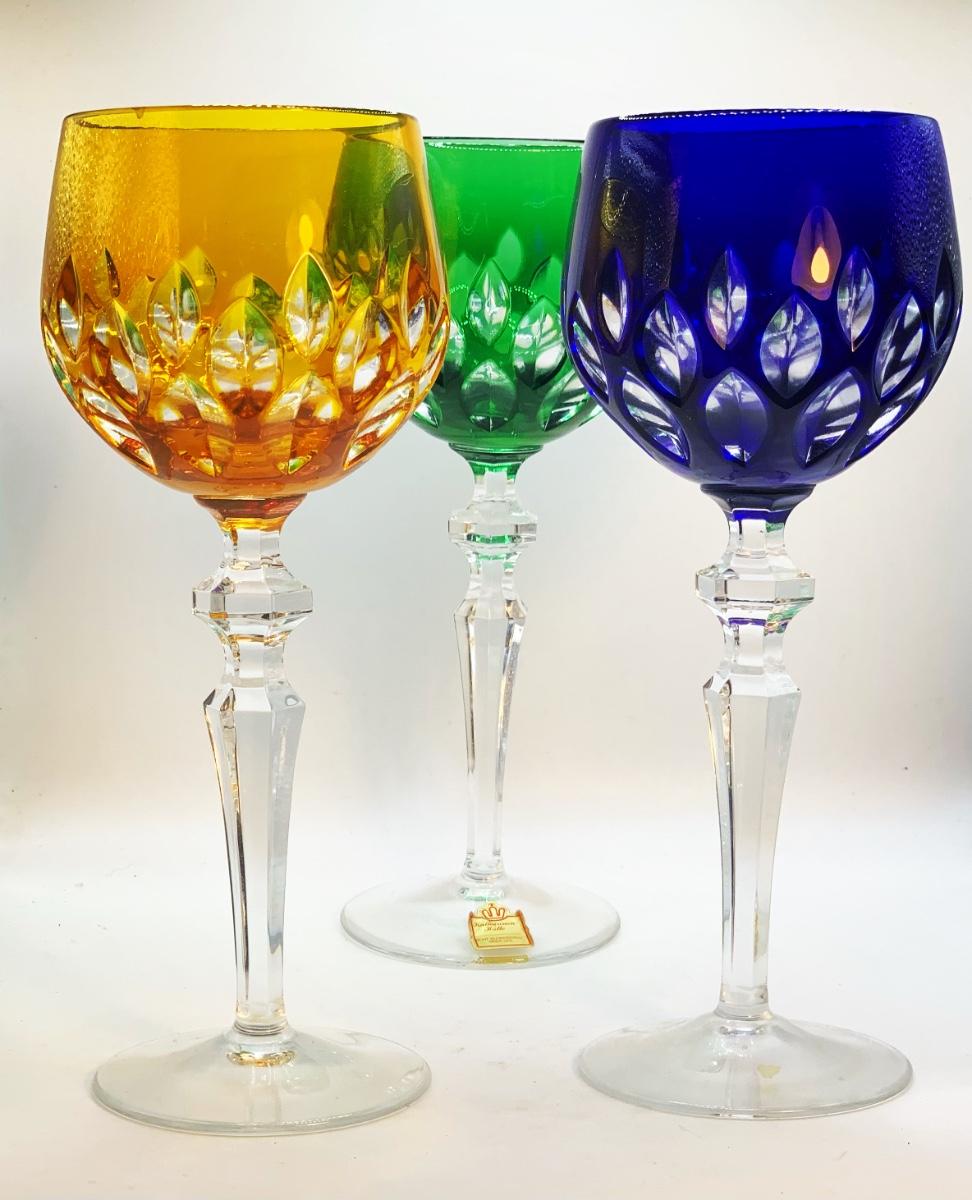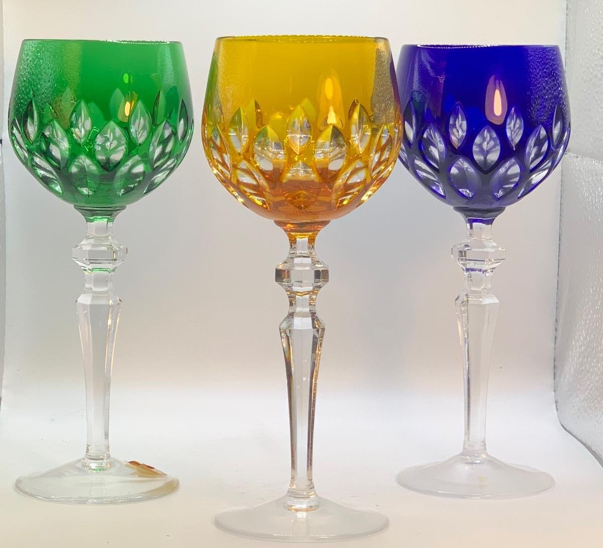 Vintage "Katharinen - Hutte Cut Crystal Multicolored Wine Stems