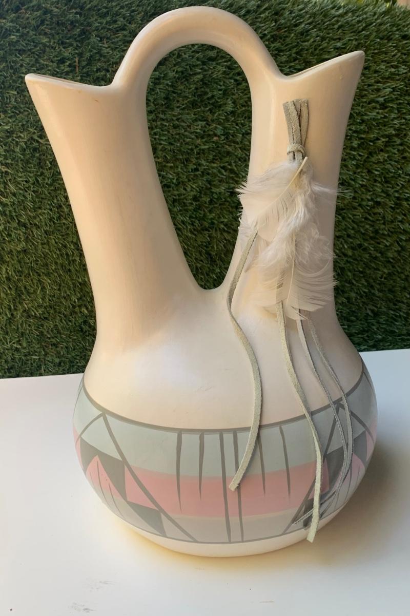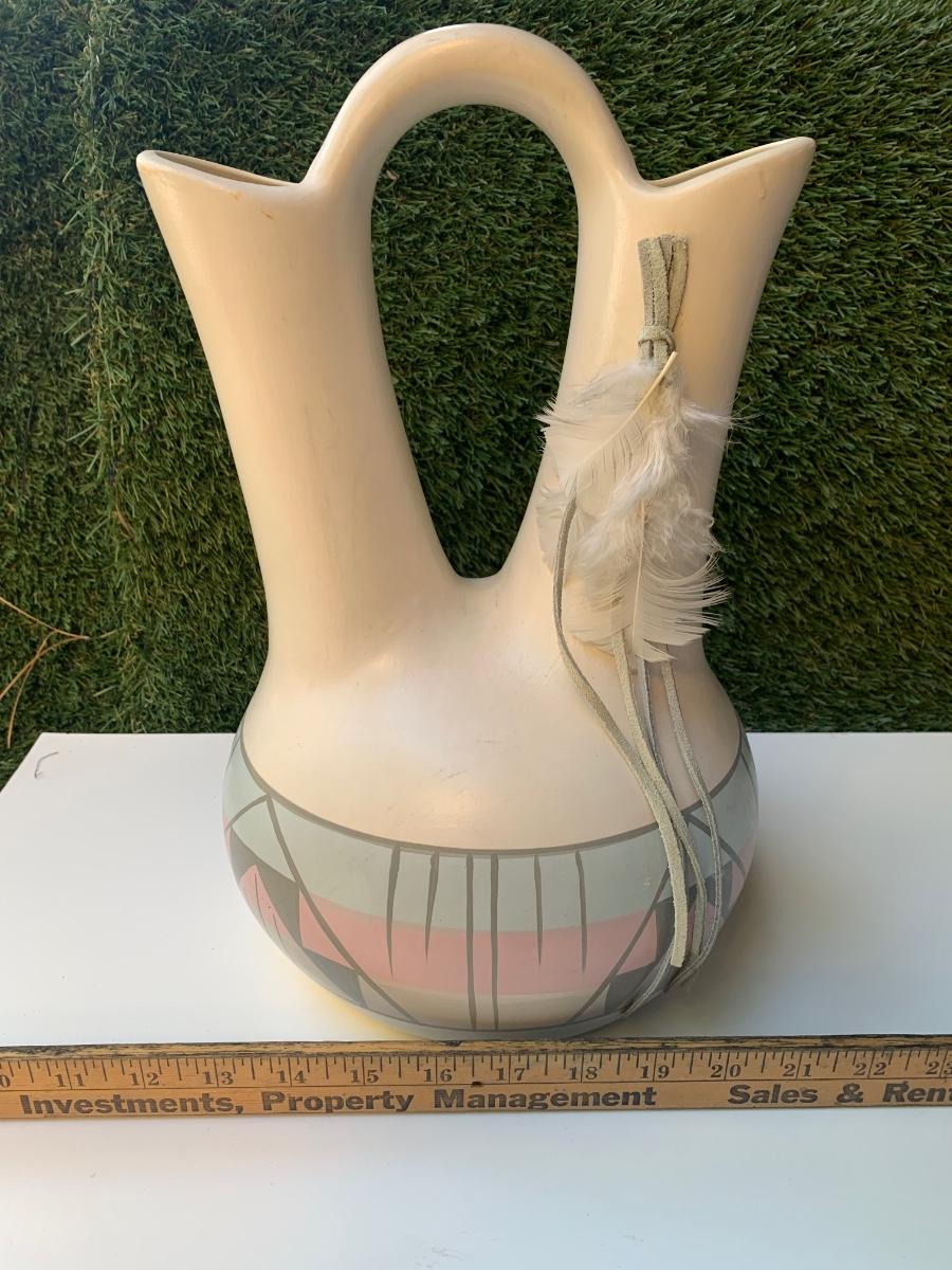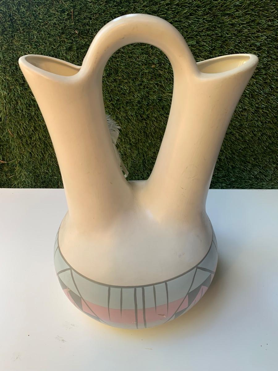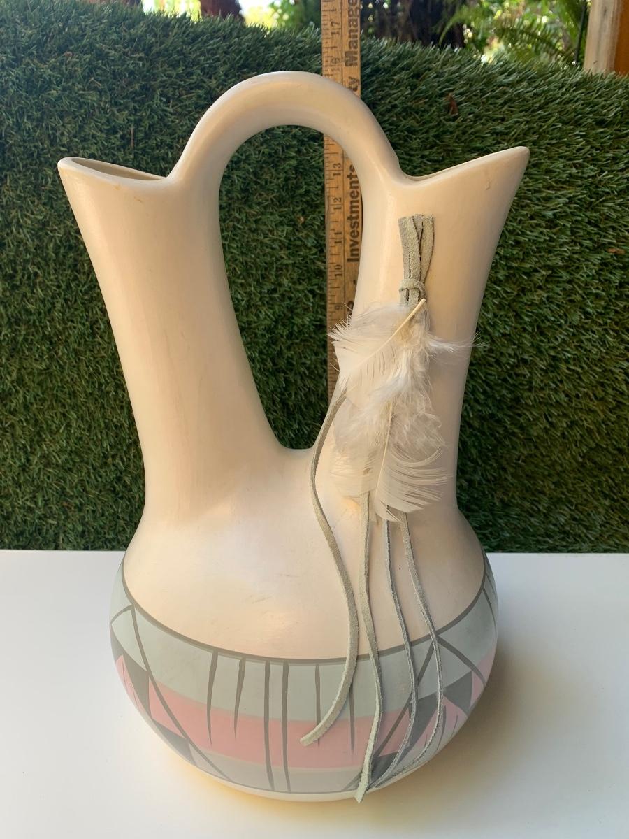 Vintage Hand Painted Navajo Native American Wedding Vase - By The Artists Of Sunshine Klay-N-Kraft Vase