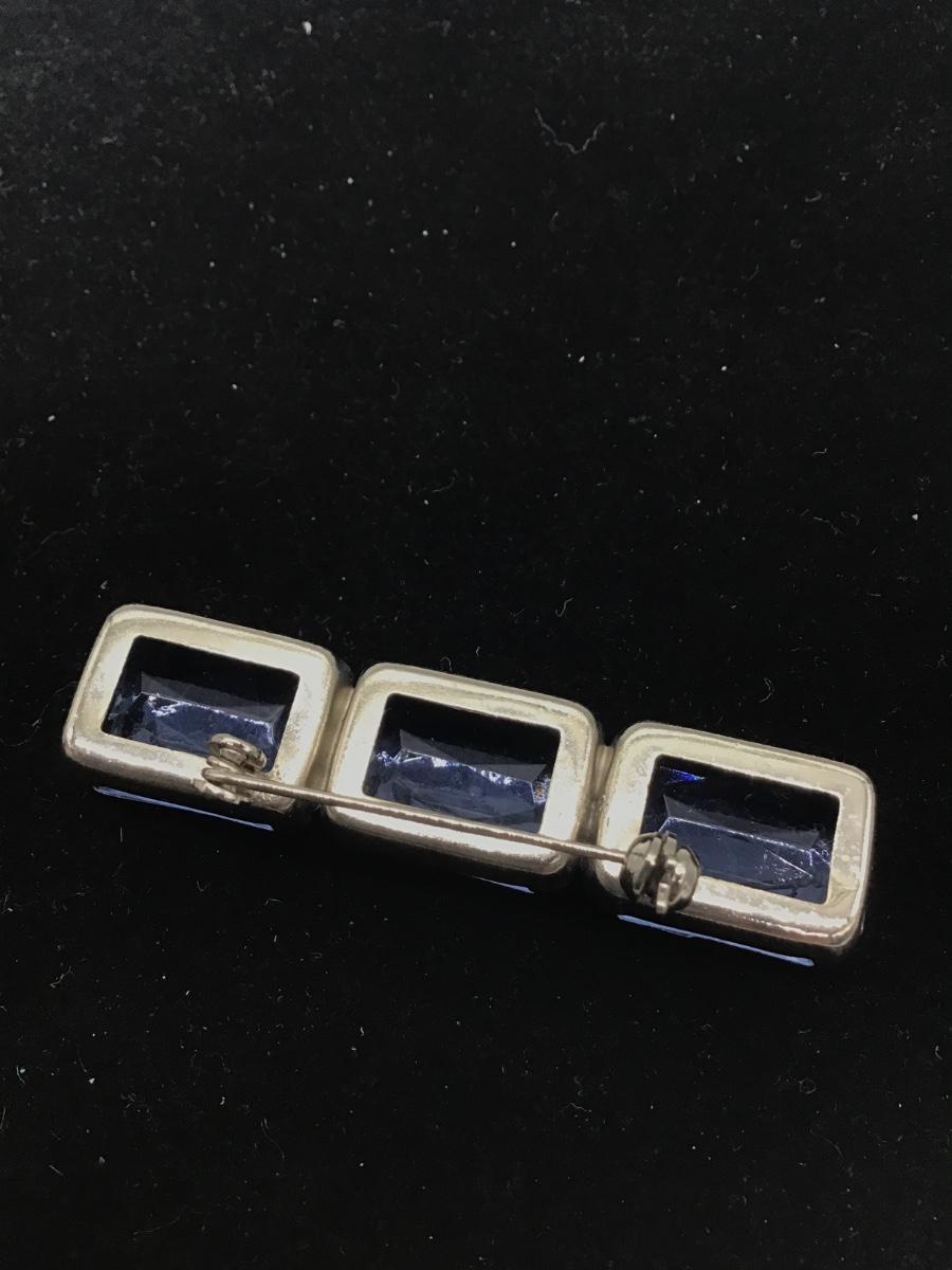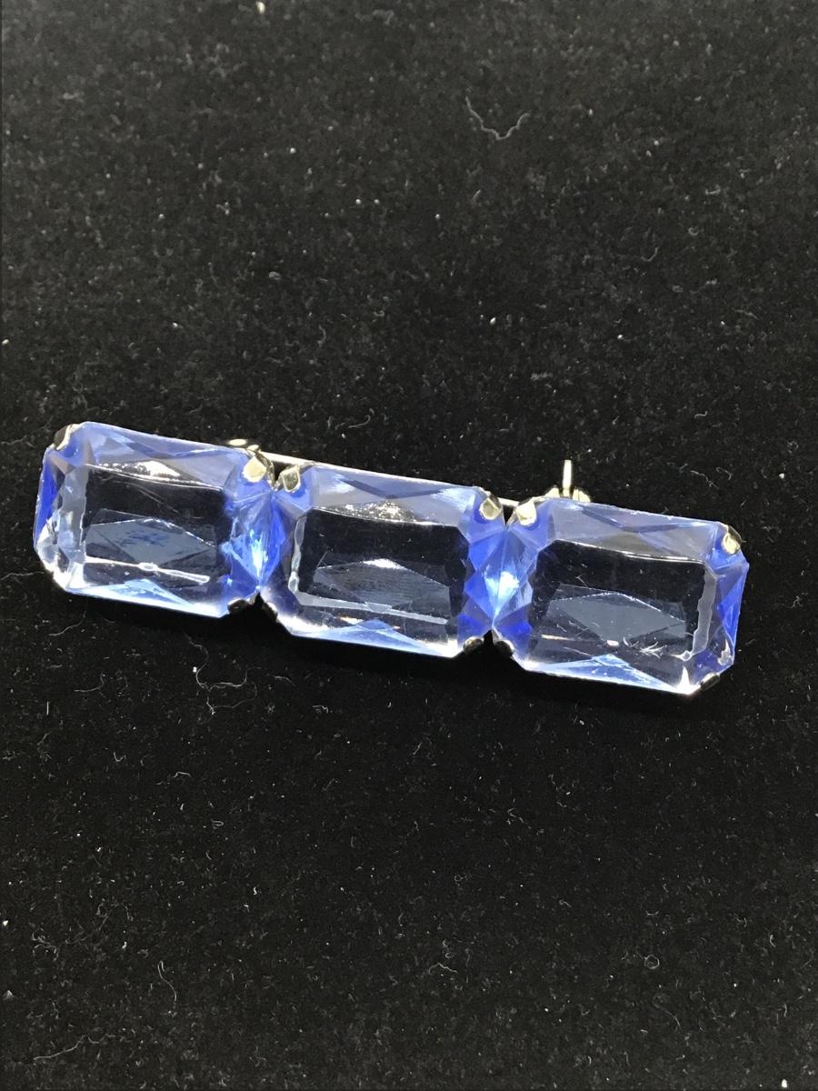 Vintage 80s Bar Pin / Blue Rhinestone Brooch / Emerald Cut Cabochon Pin / Ice Blue Glass Stone ...