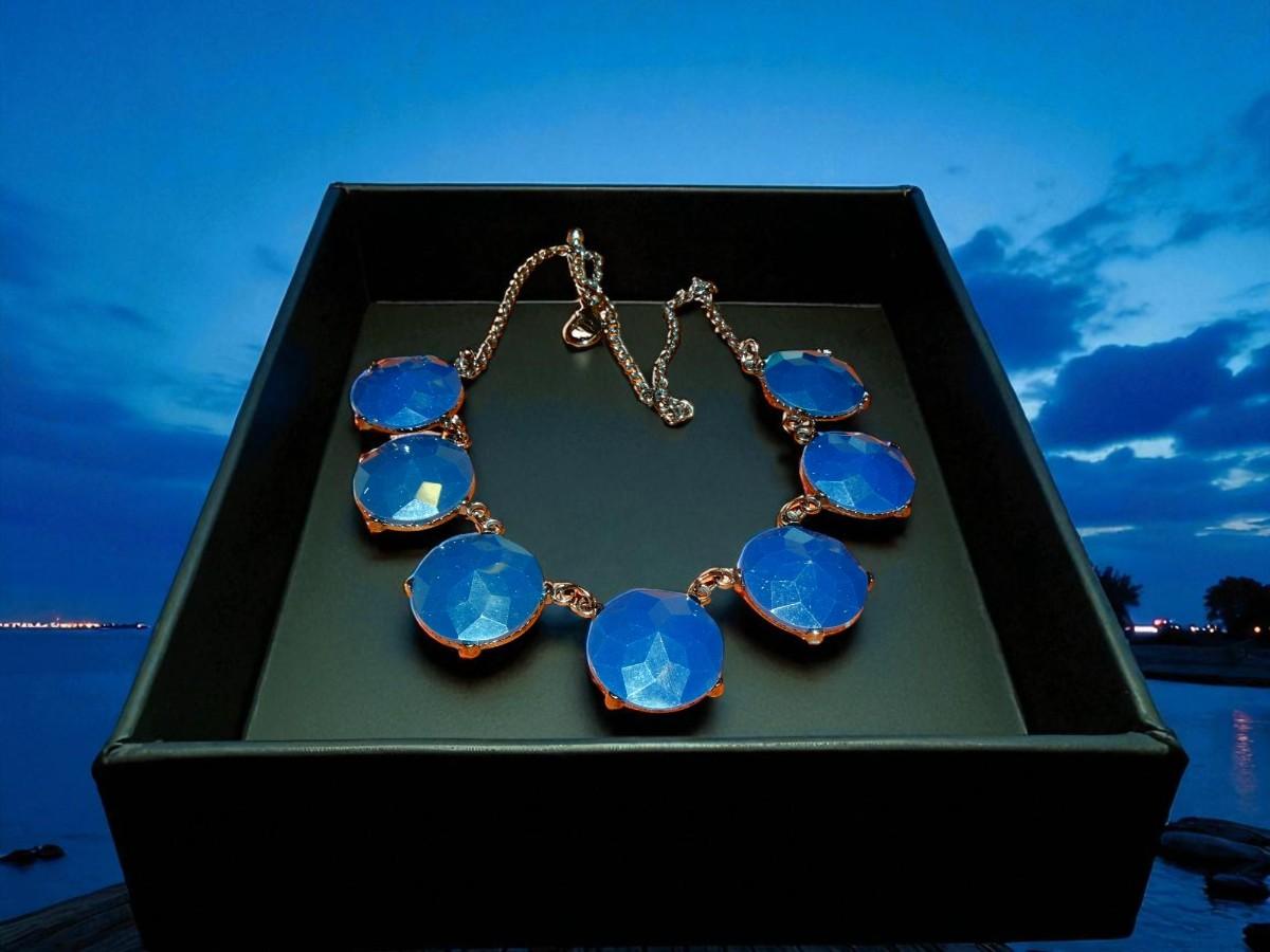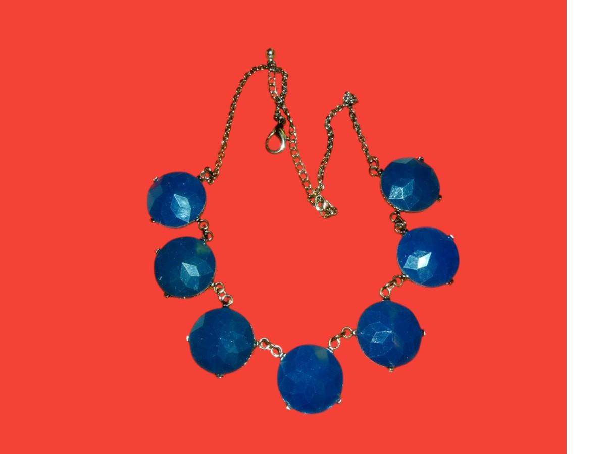 Vintage 80's Blue Plastic, Gold Tone, Collage Necklace