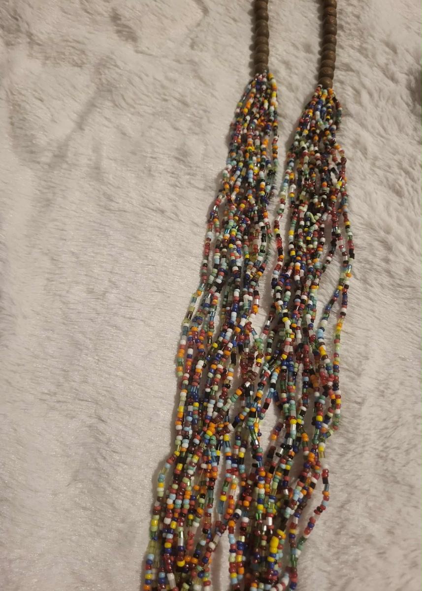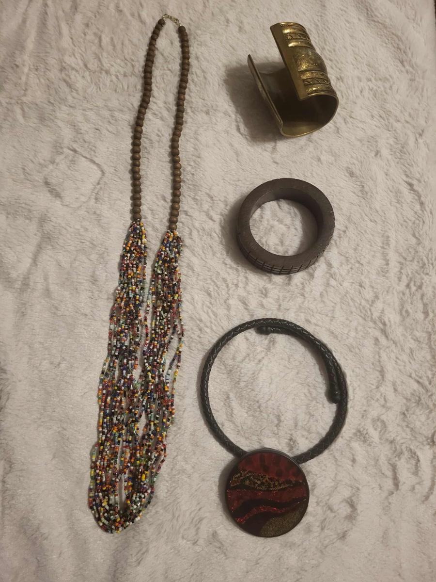 Vintage 80s GLASS BEAD NECKLACE CHICO’S ROPE CHOKER BRASS CUFF BRACELET WOOD BRACELET