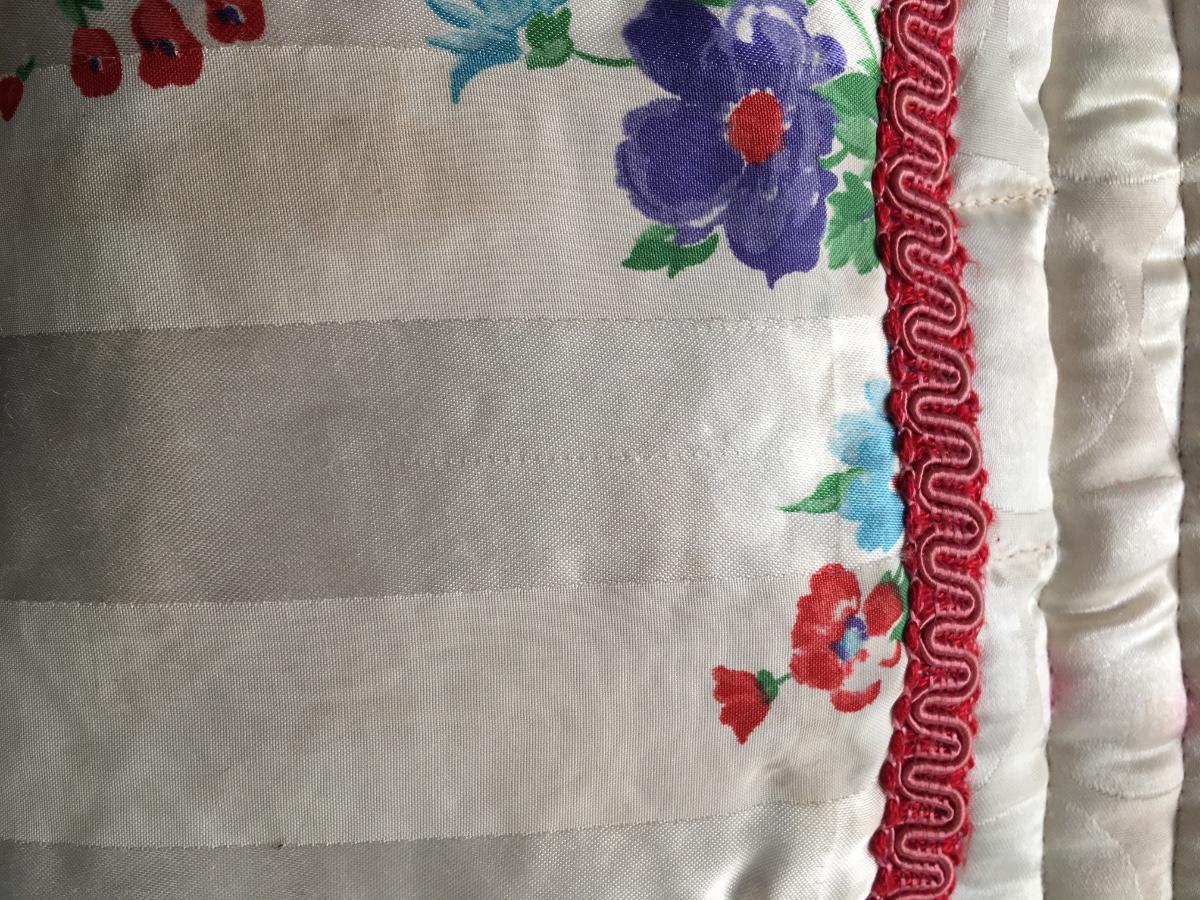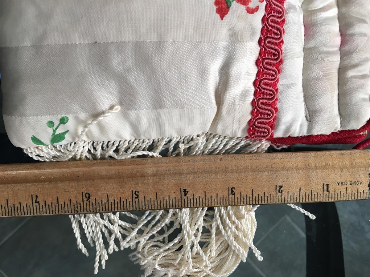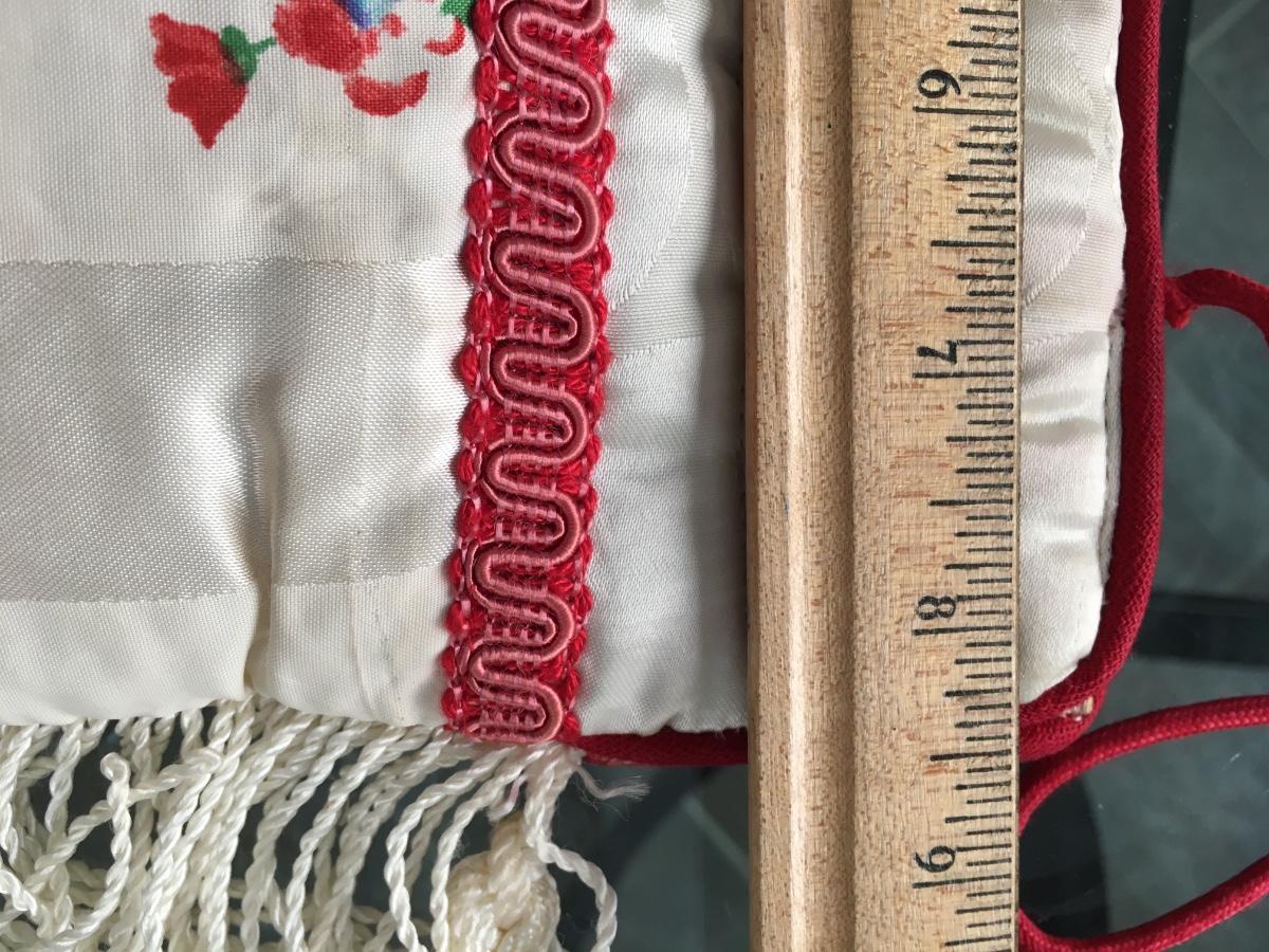 FUn clother purse with jewelry and lace accents. Some signs of wear.