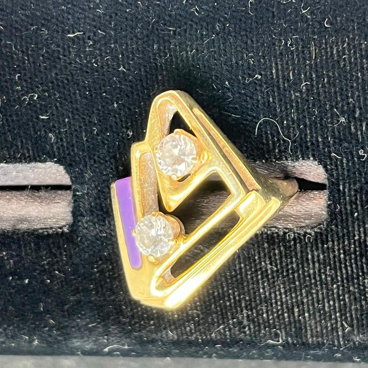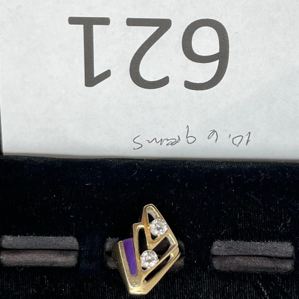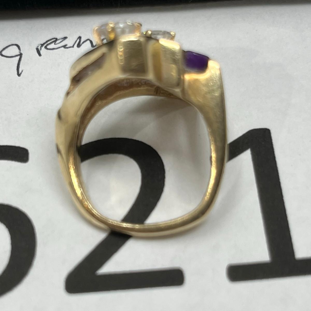 Vintage 80s Retro Art Deco Ring 14K gold w/ Diamonds