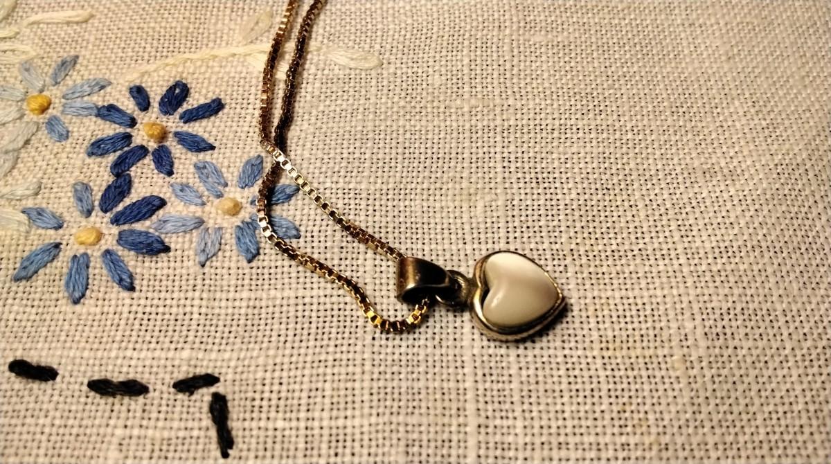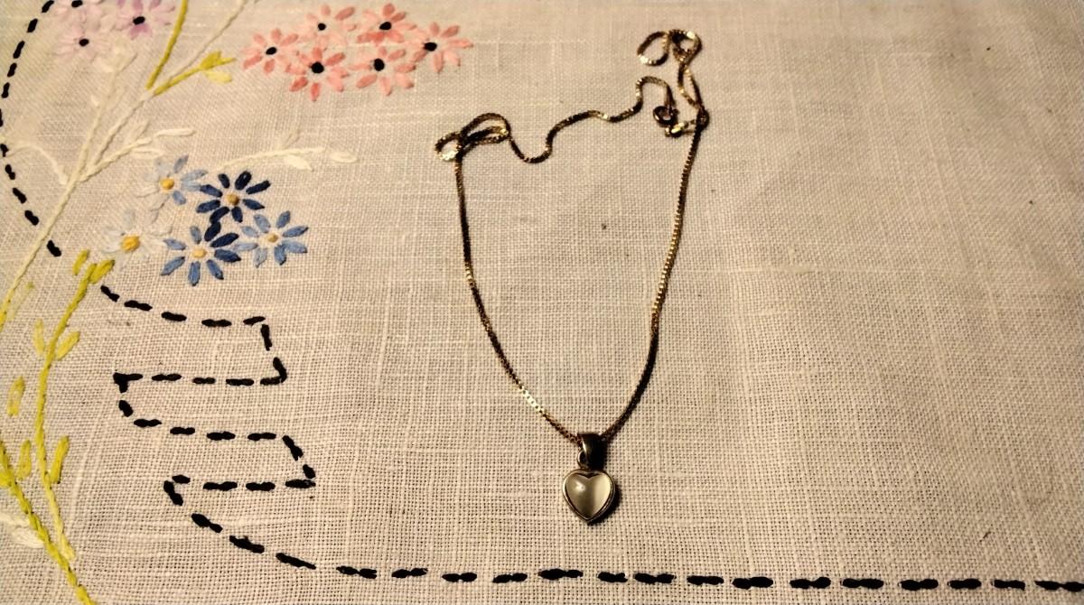 Vintage Mother Of Pearl ♥ 16" Gold Vermeil Necklace