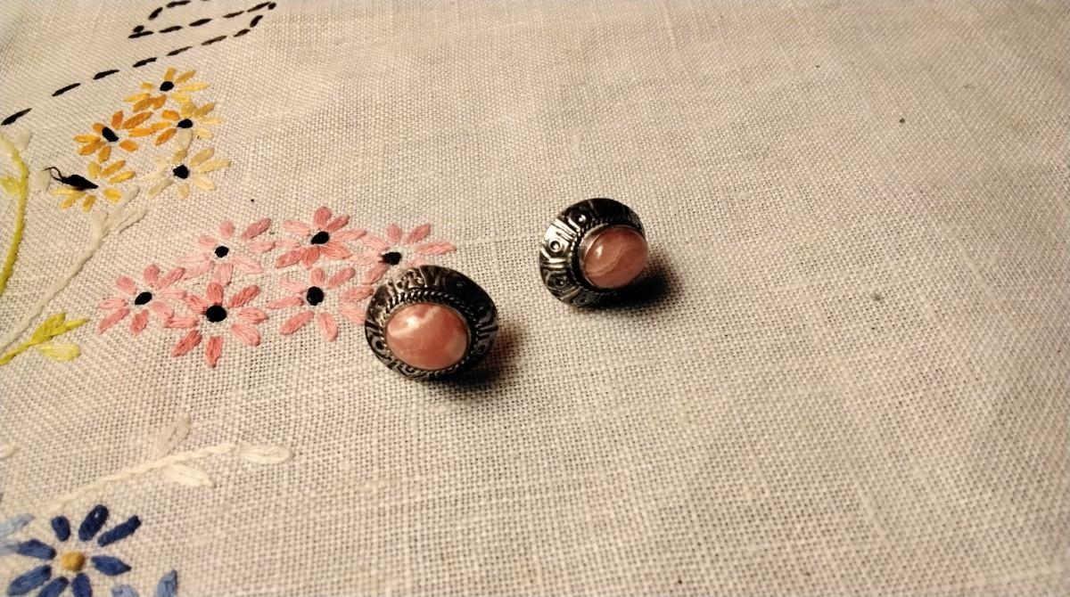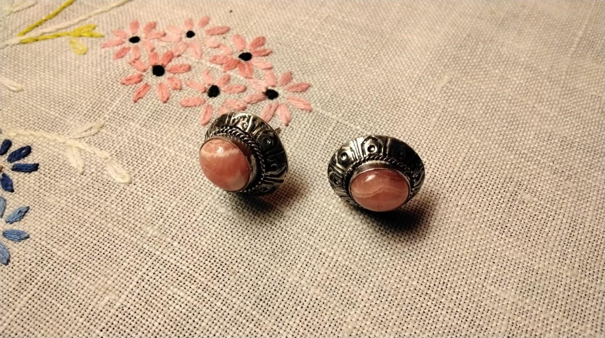 Vintage Rhodochrosite 925 Earrings