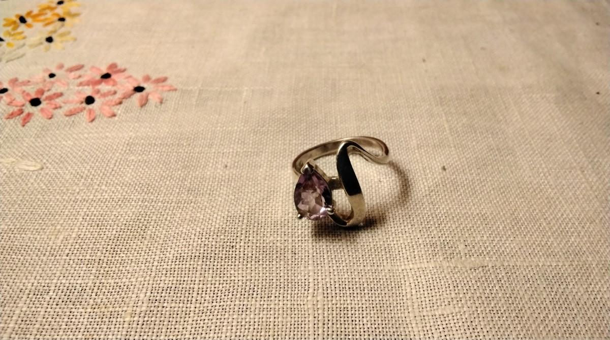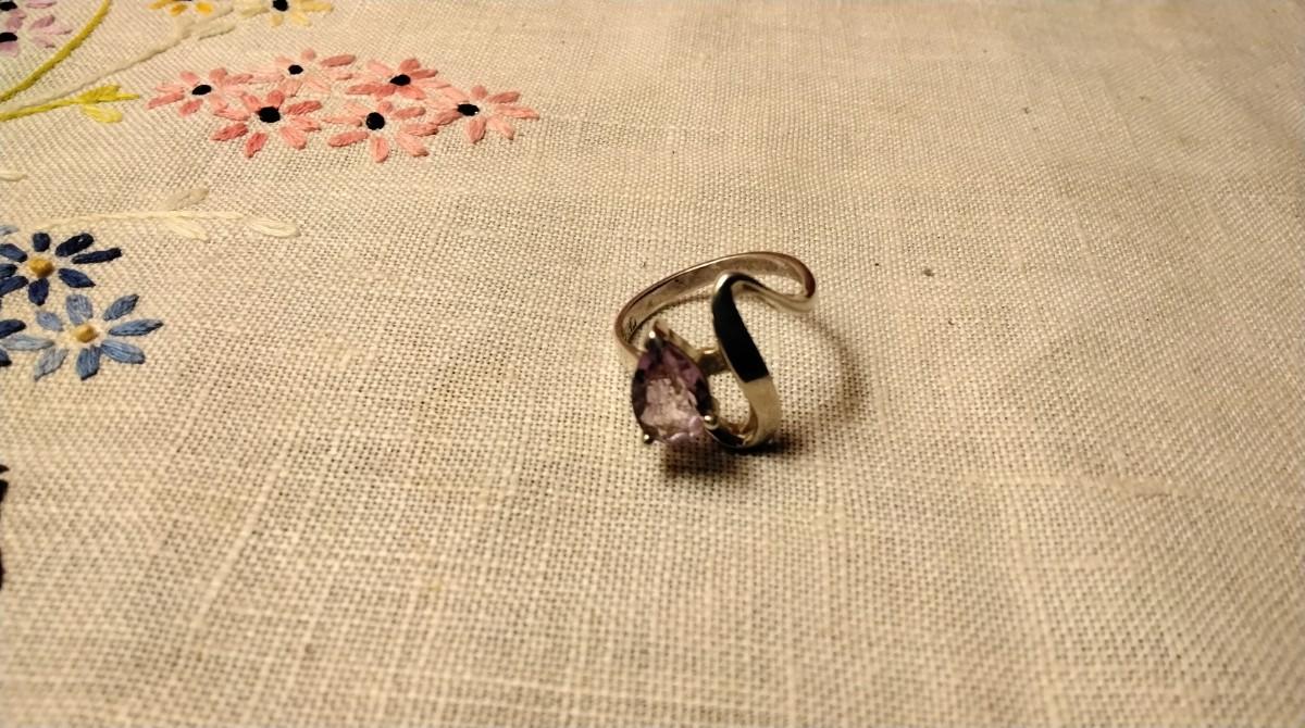 Beautiful Teardrop Amethyst 925 Ring Size 8.5