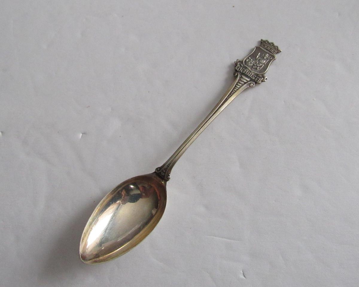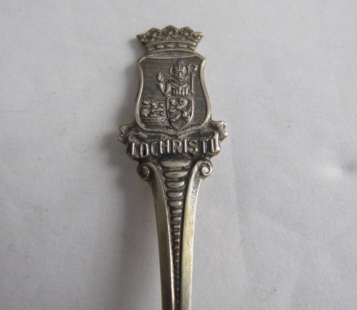 Vintage 835 silver spoon with a coat of arms and Lochristi on handle. It is about 4 3/4" long, narrow, coffee spoon. It is marked with a mark that I can't make out, HH and A835 and another mark I can't make out on the back of the handle. It is nice quality and is in very nice shape with very little use wear. Shipping is available at actual shipping cost plus $5.00 handling fee per box for supplies/labor. See our terms for details. All sales are final. Condition notes may not be all inclusive, we may miss some issues as most vintage items are not in mint condition and have some degree of wear, paint loss, etc, but we always try to note obvious damage.