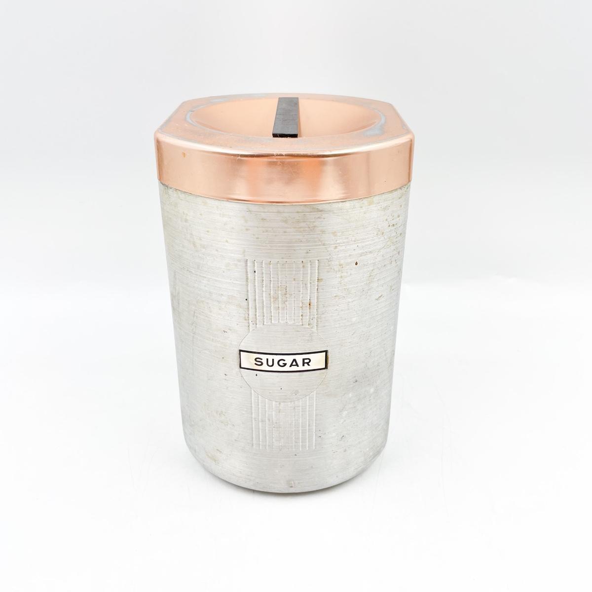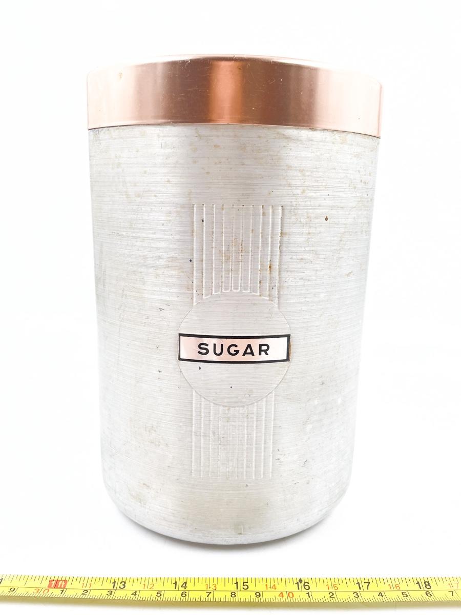 VINTAGE 8.5” ALUMINUM SUGAR CANISTER W/ COPPER LID