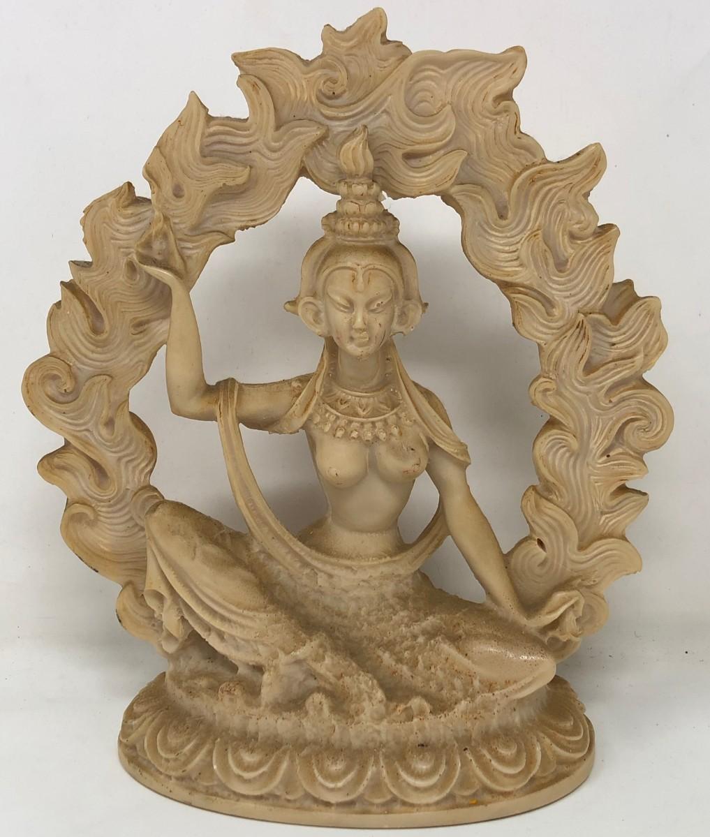 Description: Vintage 8.5 inch Shiva Statue Resin, note: crack on right side above hand. Approximate measurements: 8.5 x 7 x 3 inches. Materials: resin.