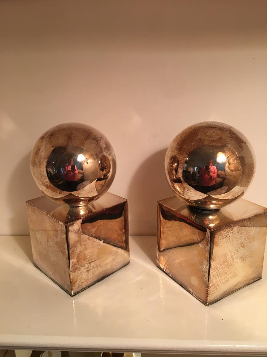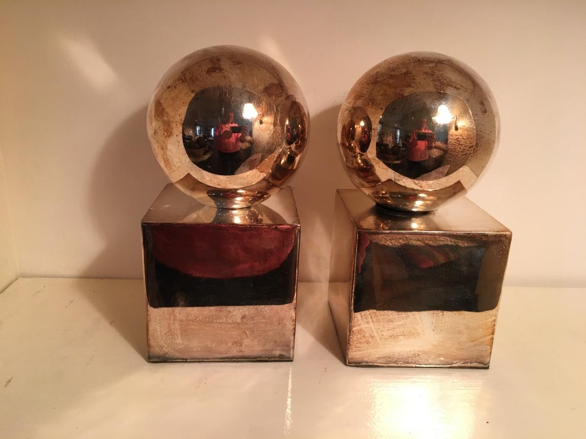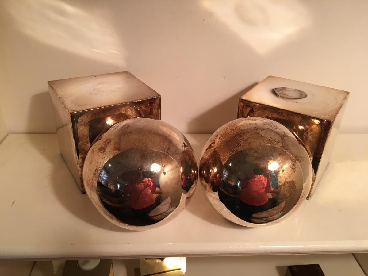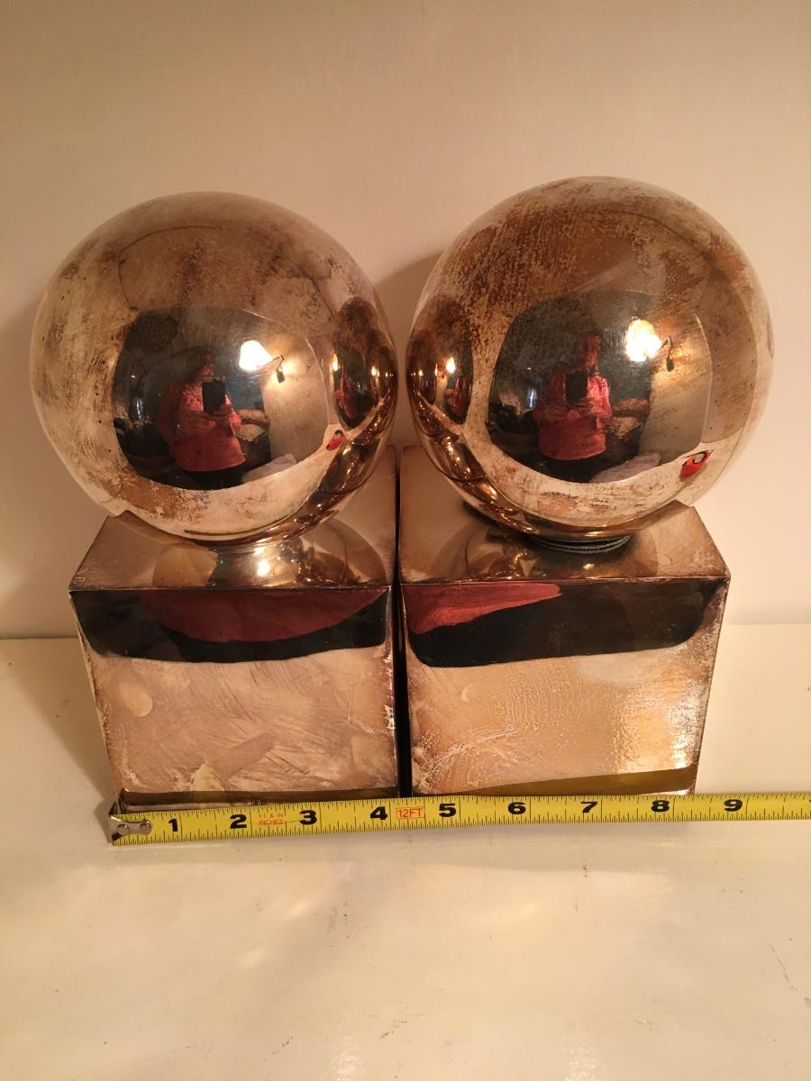 Pair of heavy bookends. Balls are NOT attached. Need a good polish, but will keep books in place or make for lovely accent decoration.