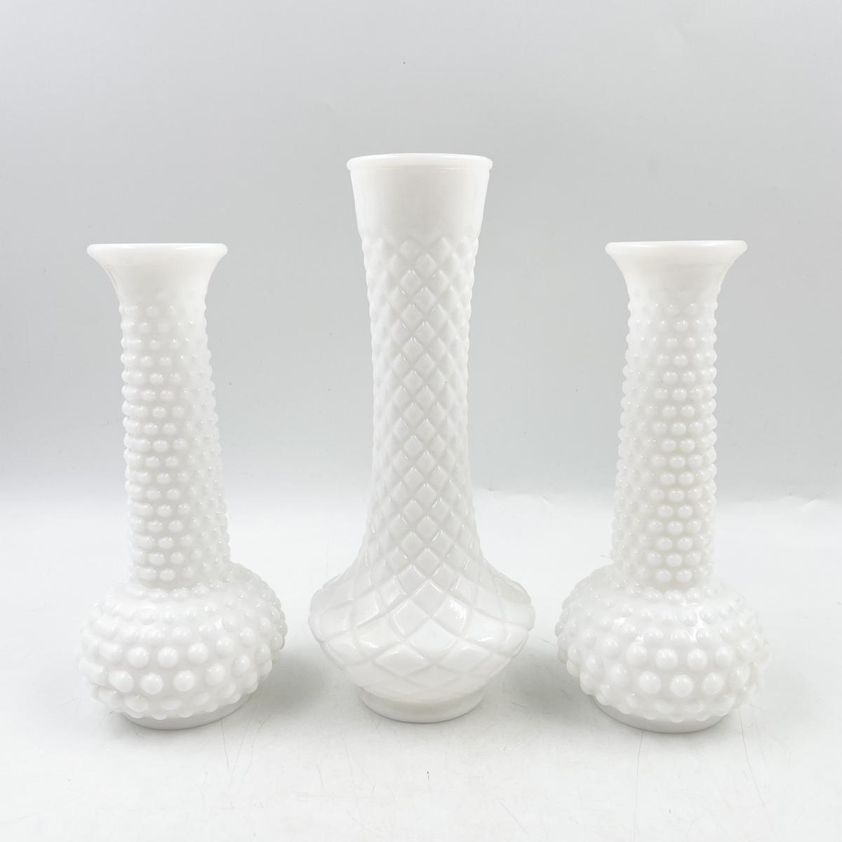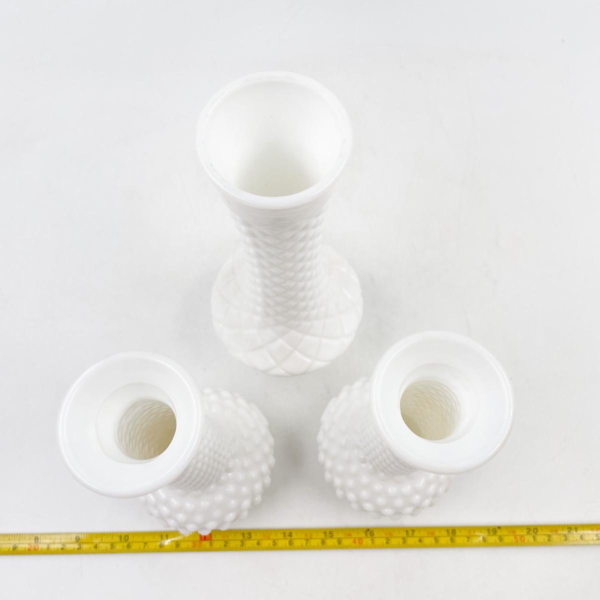 VINTAGE 8-9” MILK GLASS VASES (3)