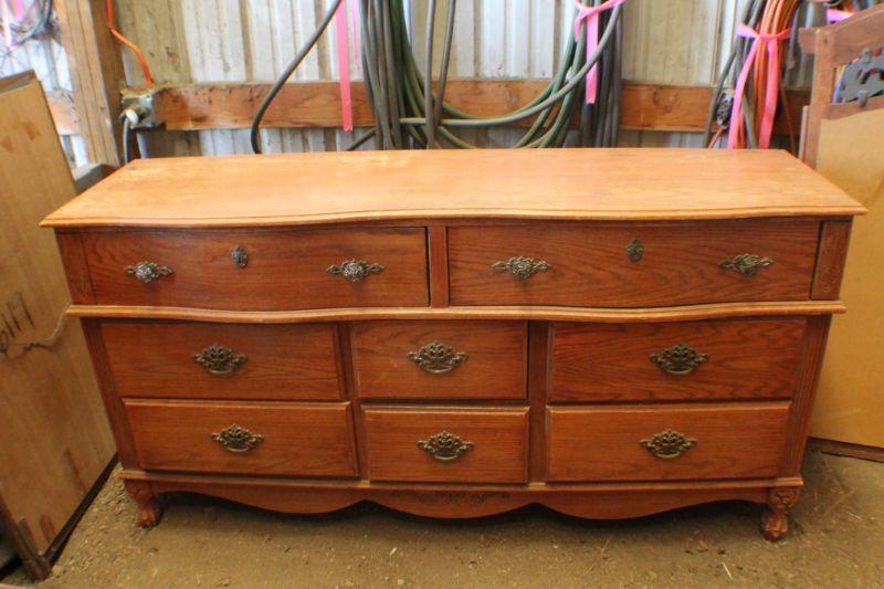 Lot #247: Vintage 8-Drawer Light Oak Dresser w/ Claw Feet