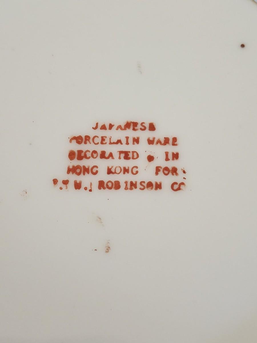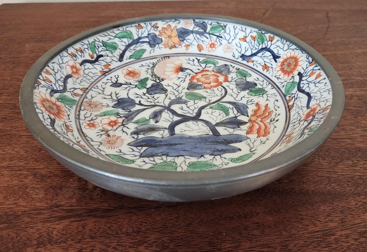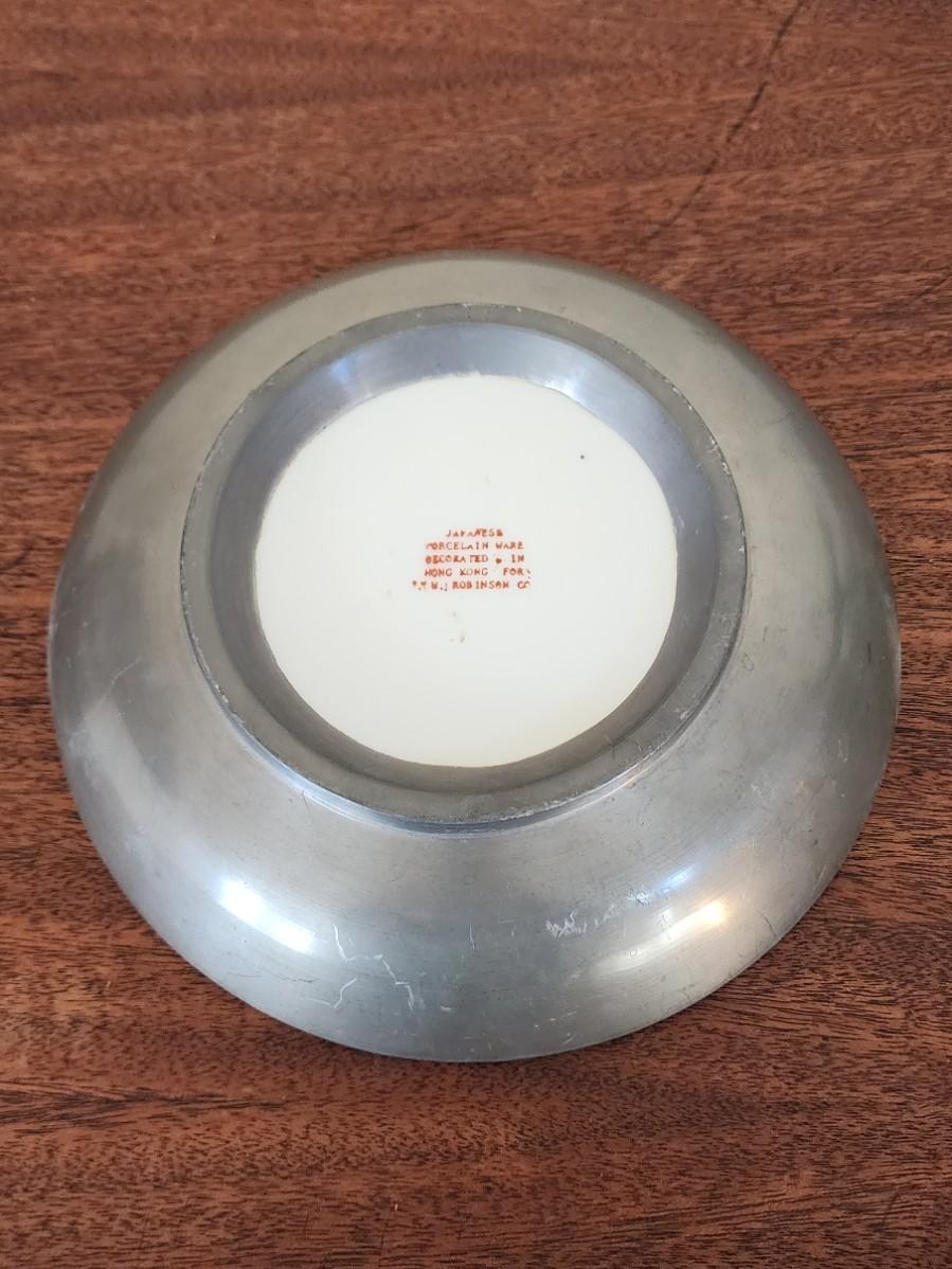 Vintage 9 1/2" Japanese Porcelainware Bowl in Metal - Painted in Hong Kong, Blue, Green, Coral