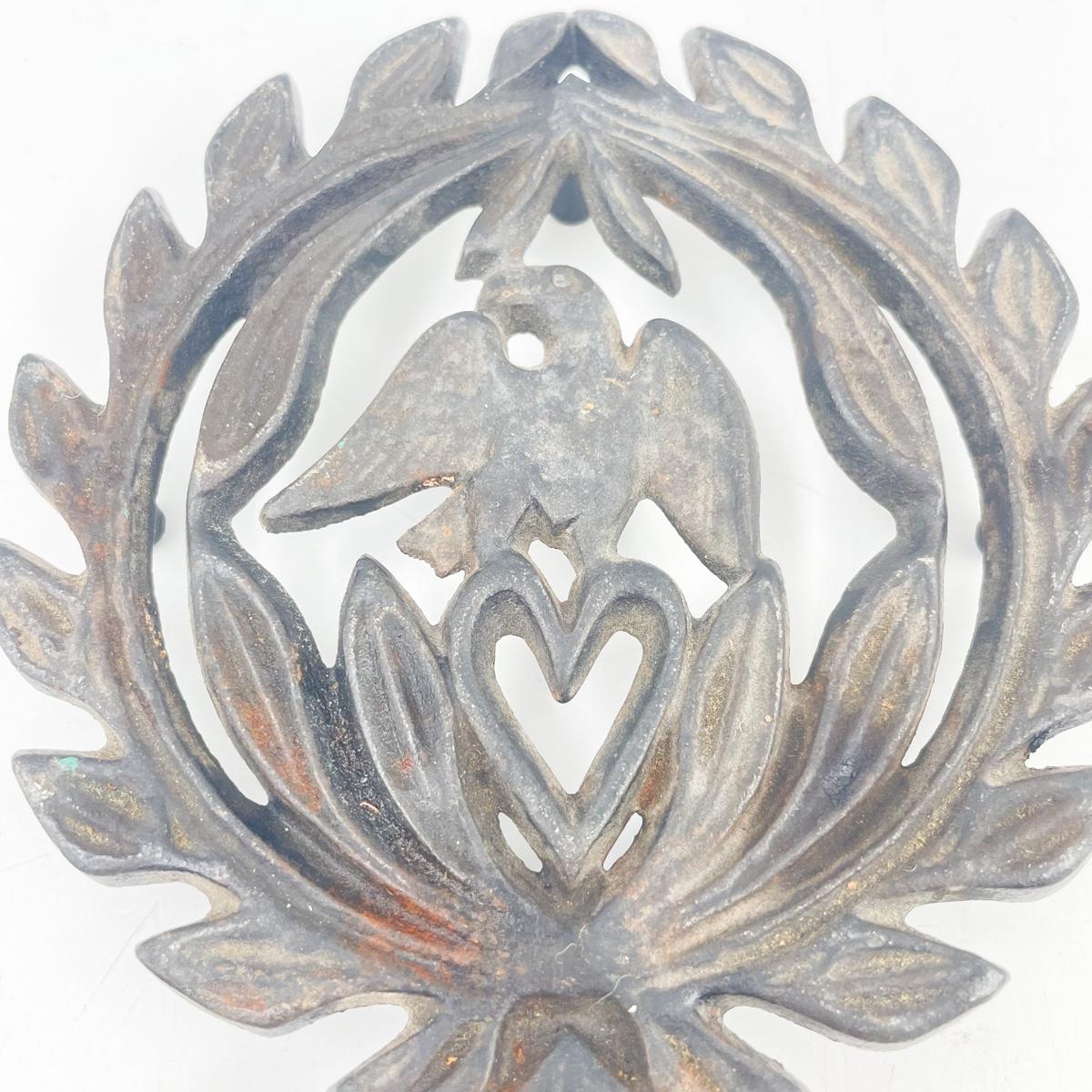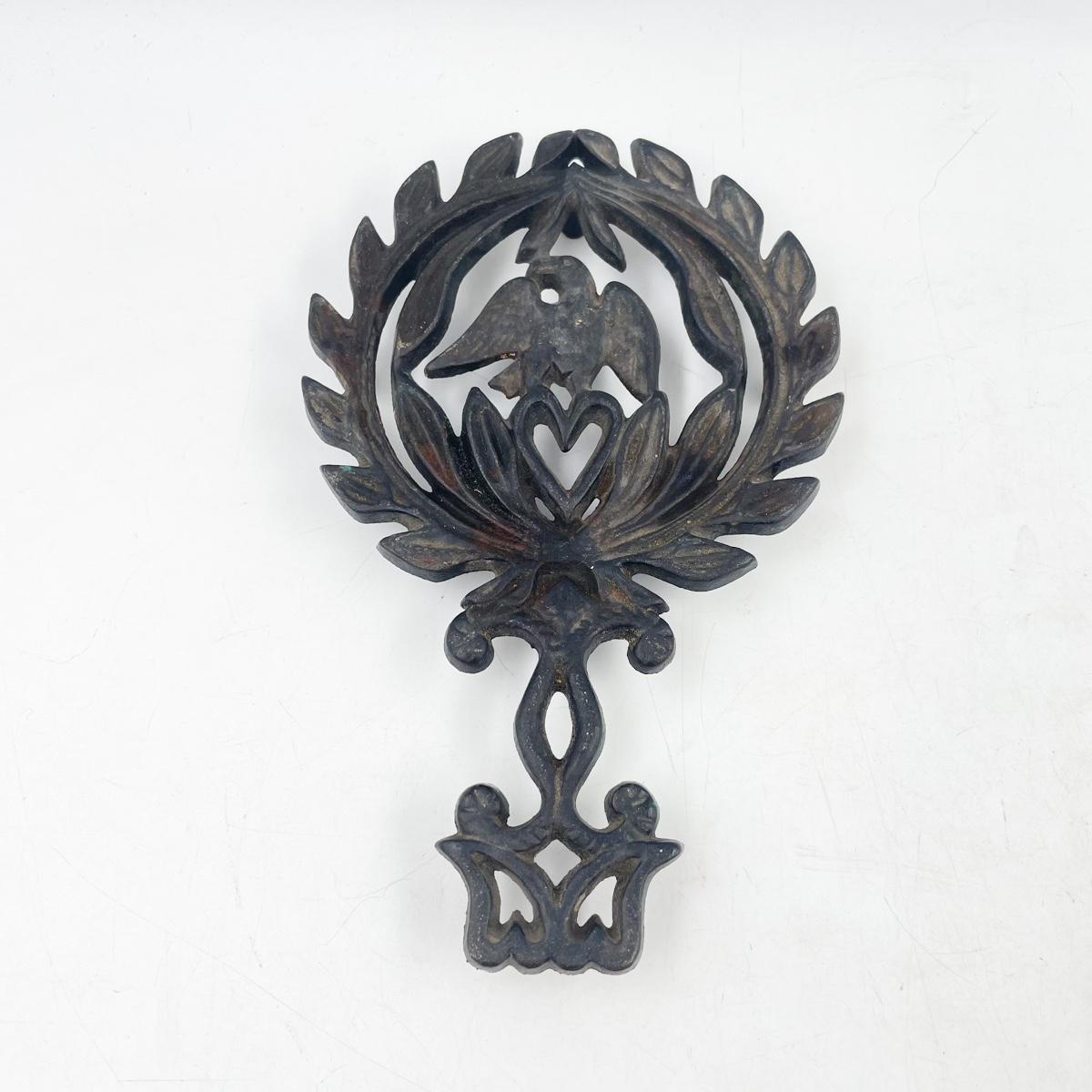 VINTAGE 9” EAGLE & HEART WROUGHT IRON TRIVET