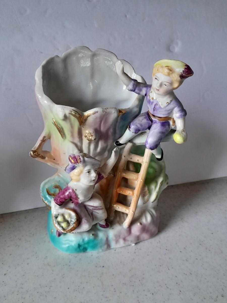 Vintage 9" hand painted porcelain tree vase with figures and vintage Japan Tankard stein