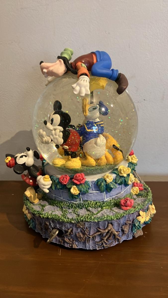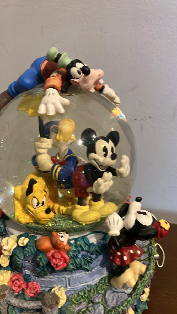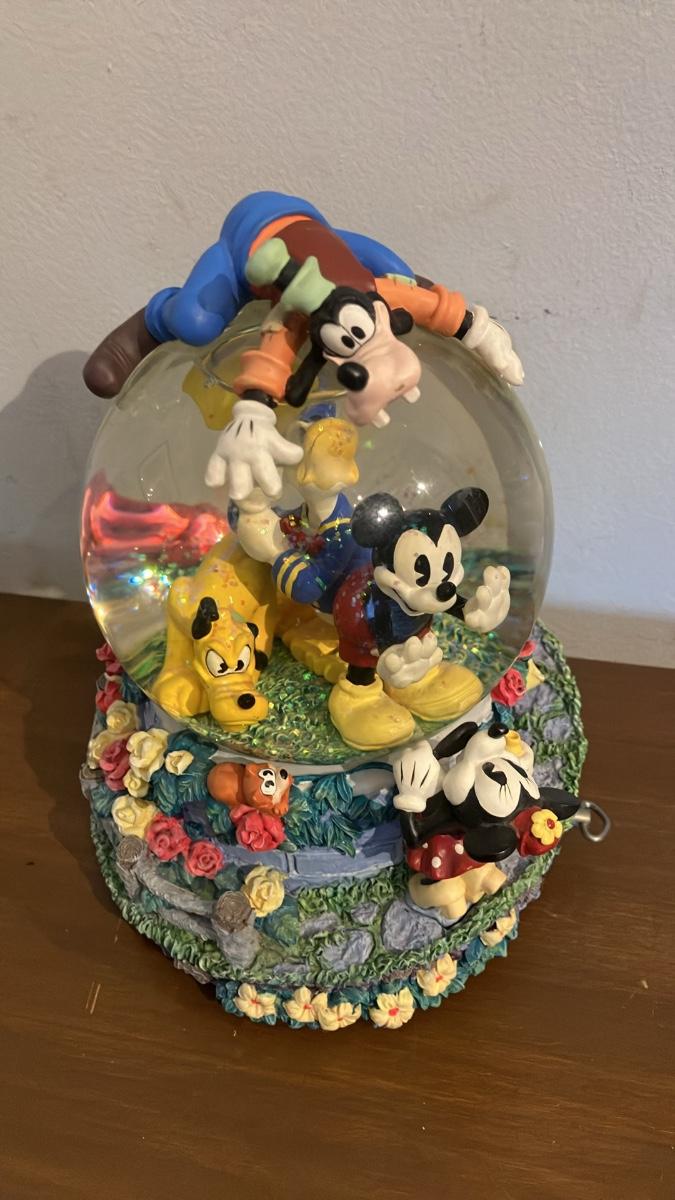 Vintage 90s Disney Mickey Mouse and Friends Musical Glitter Snow Globe Plays Zip-A-Dee-Doo-Dah 7.5”h