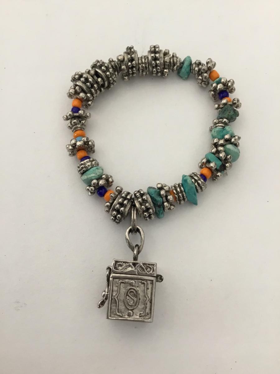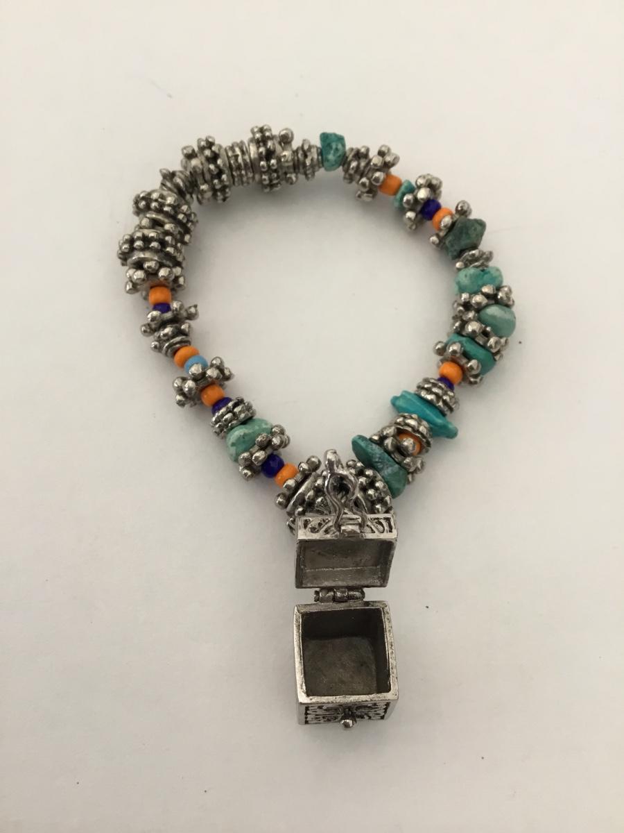 Vintage 925 silver beaded stretch bracelet with keepsake box charm