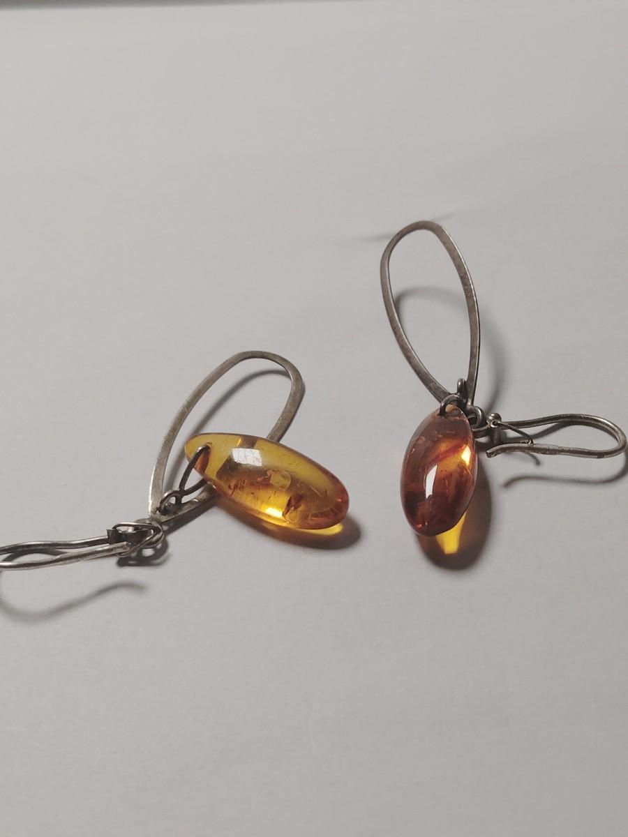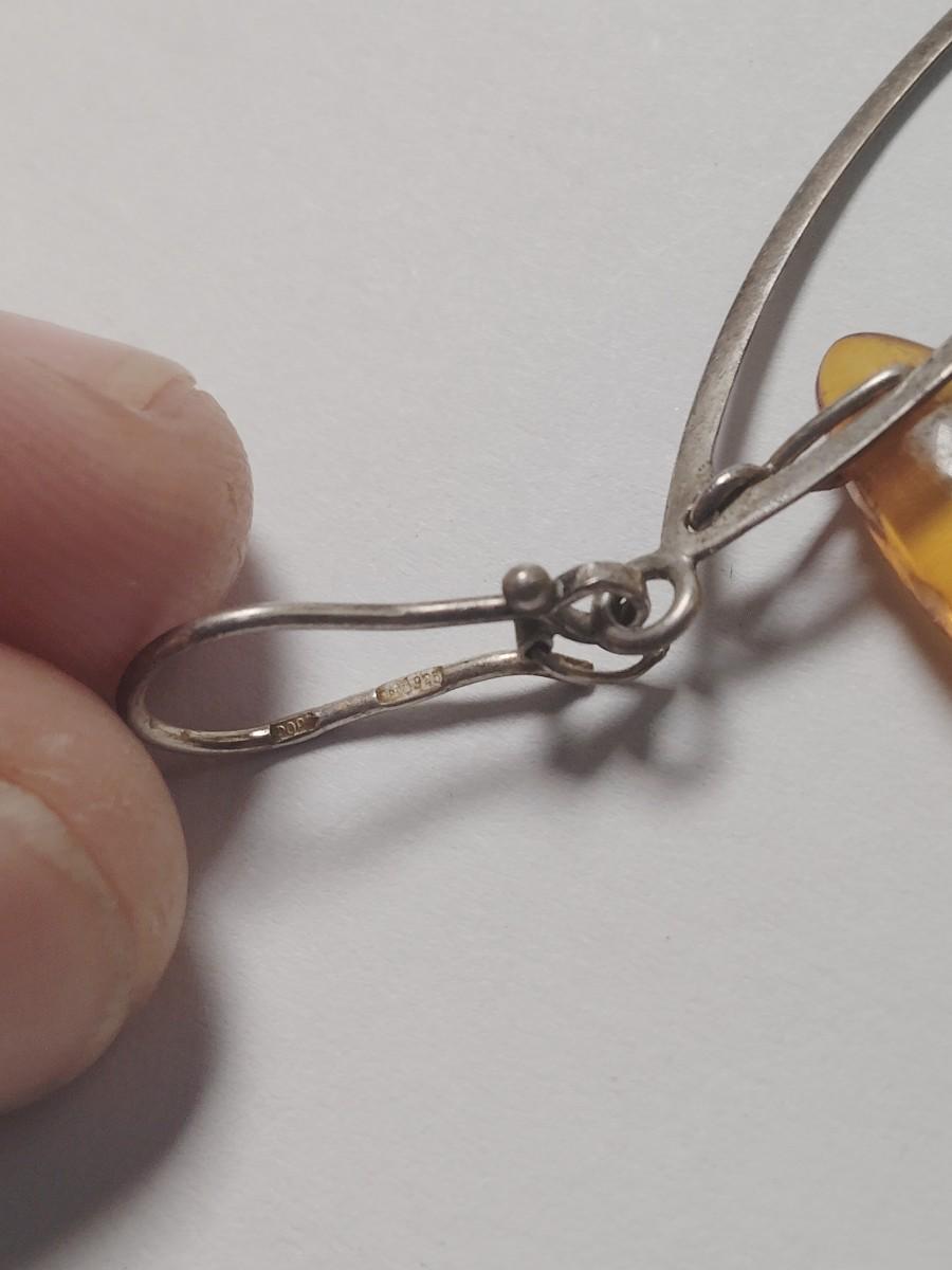 Vintage 925 Silver Earrings with Amber Colored Stone