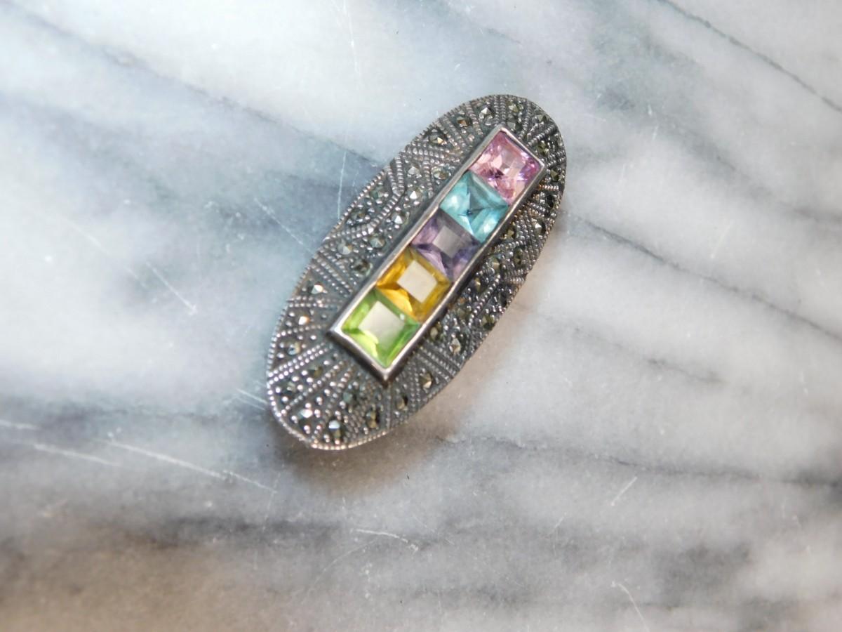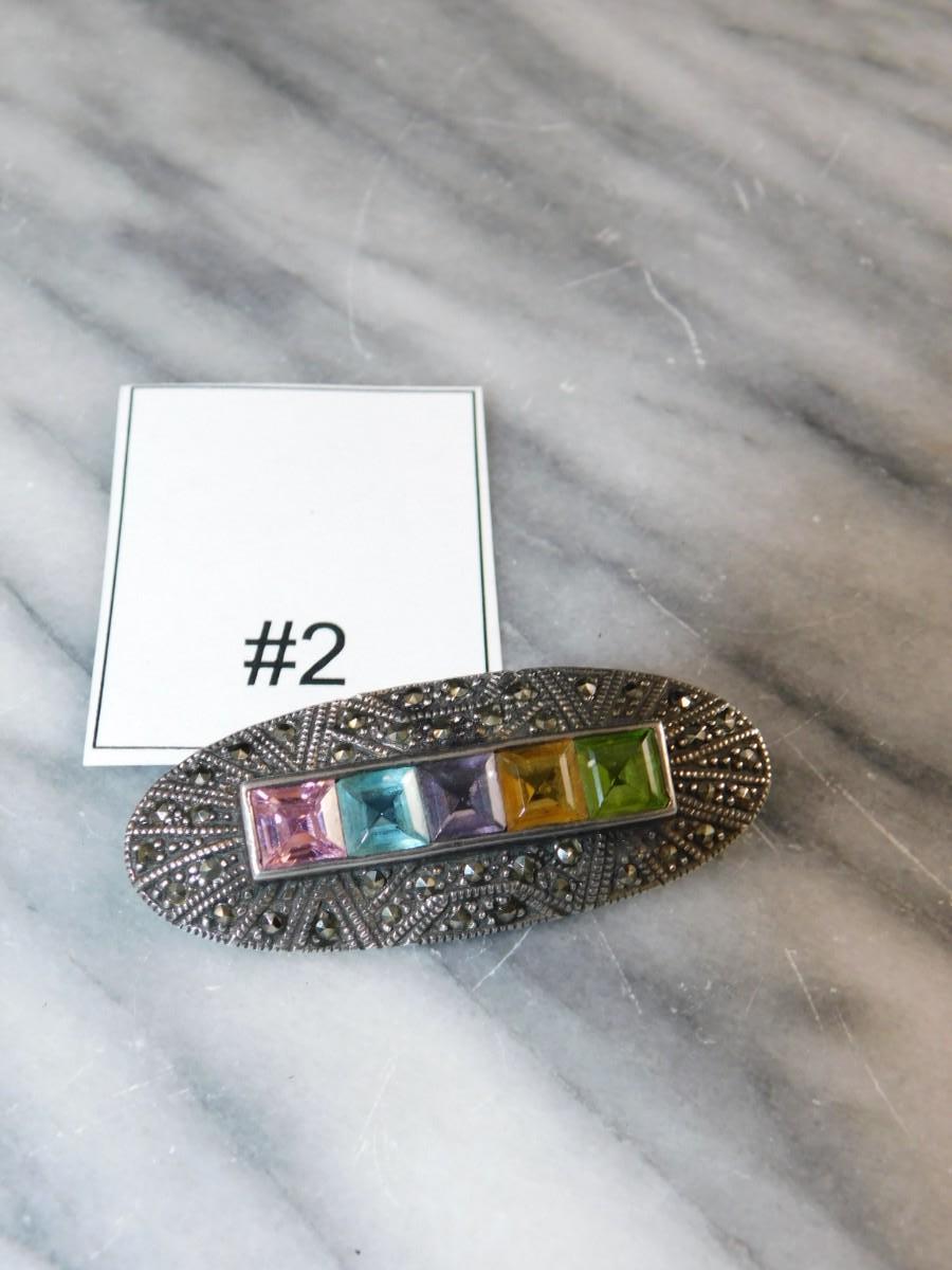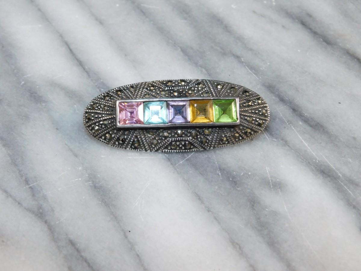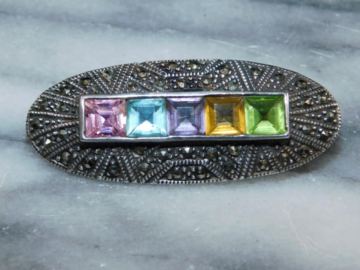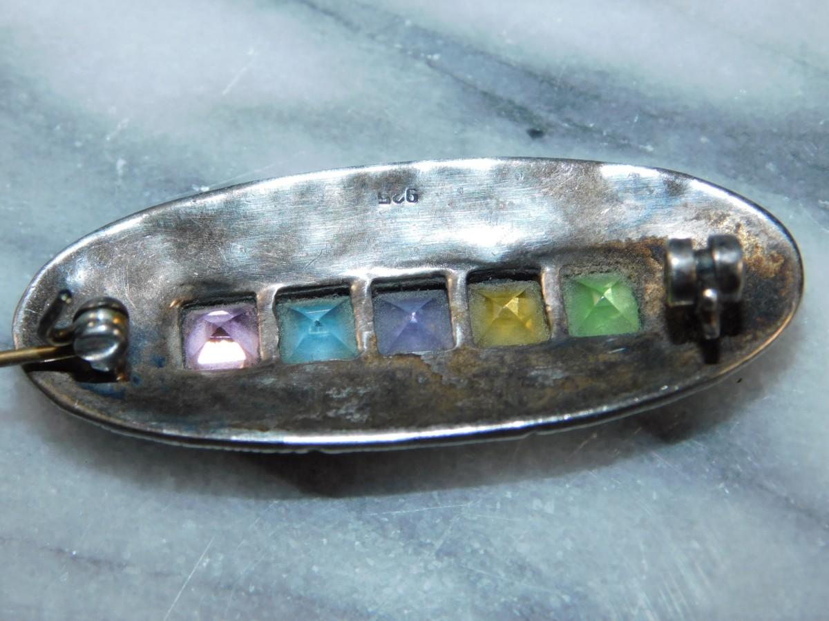 Vintage 925 Sterling Brooch w Glass Settings 5.3g