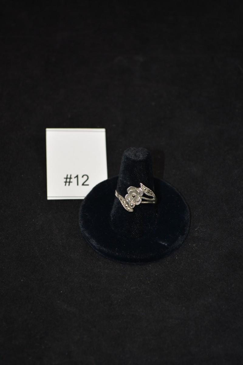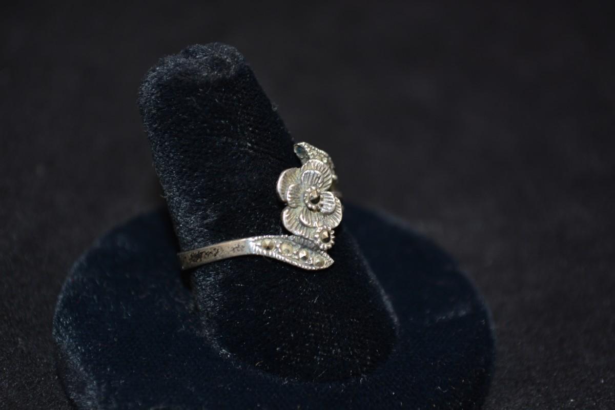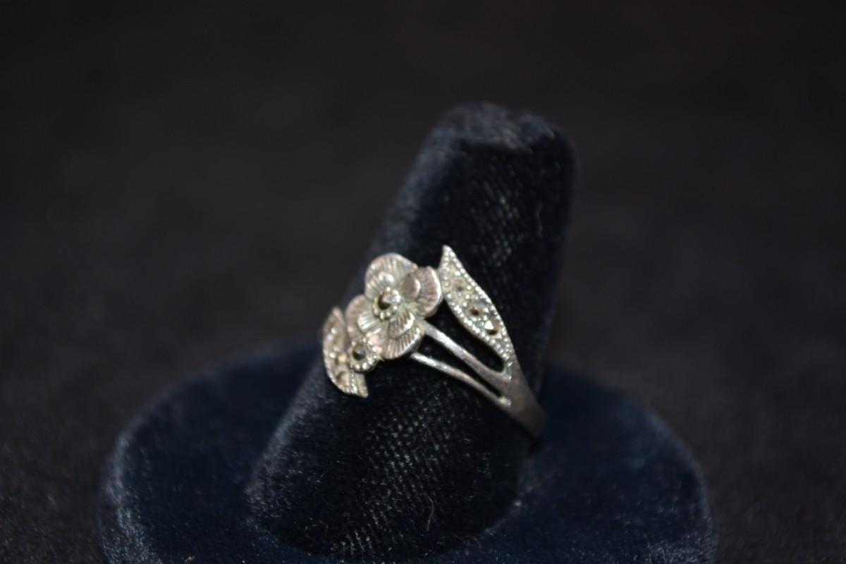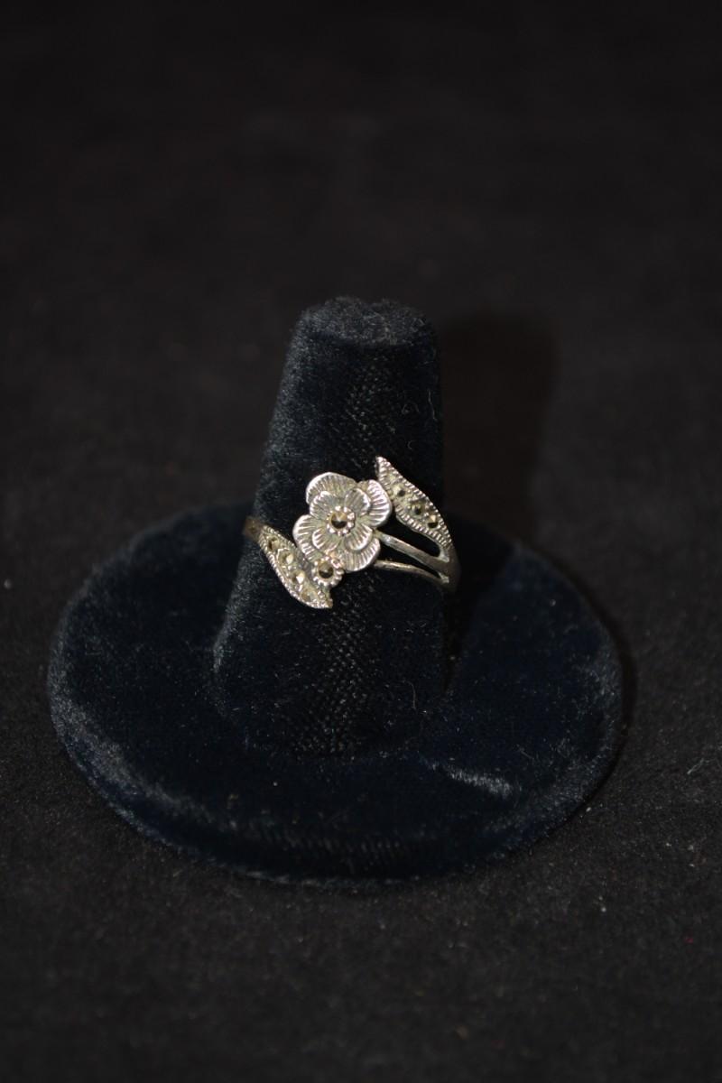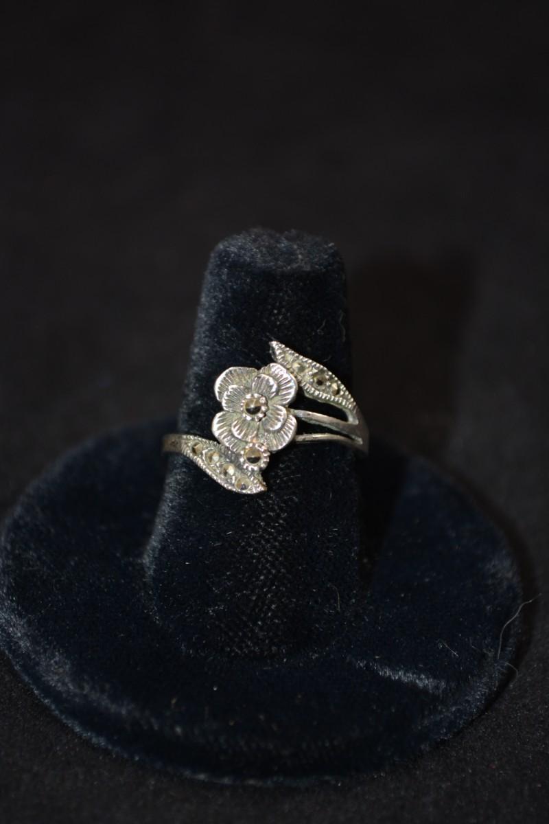 Vintage 925 Sterling Marcasite Rose Ring Size 9, 2.4g