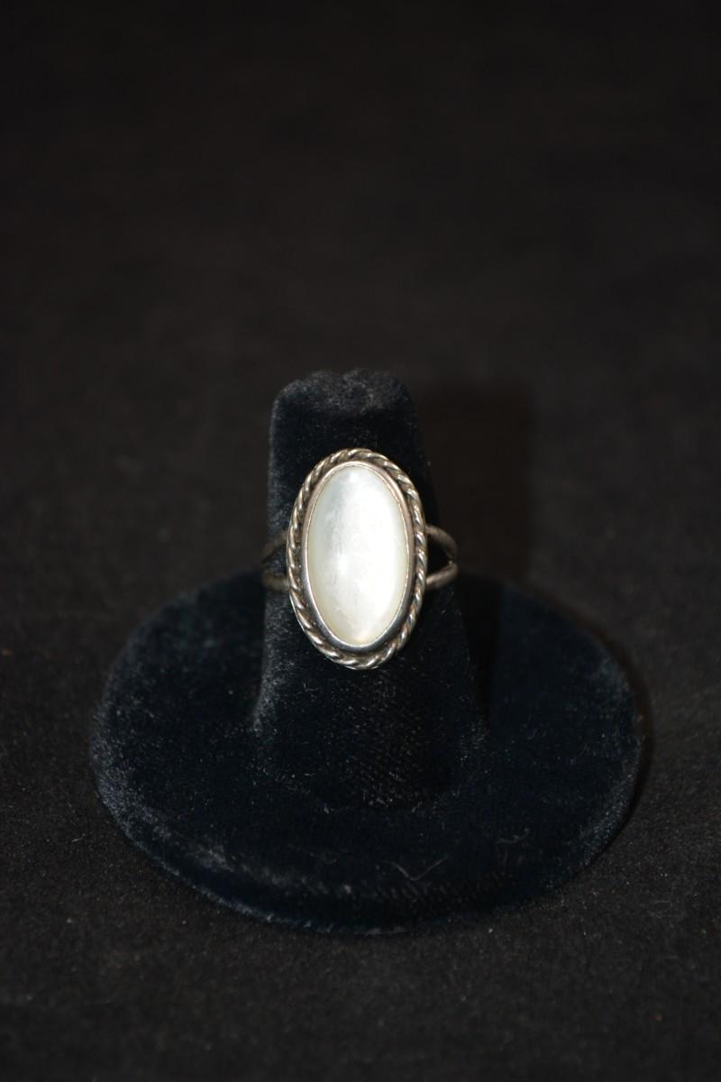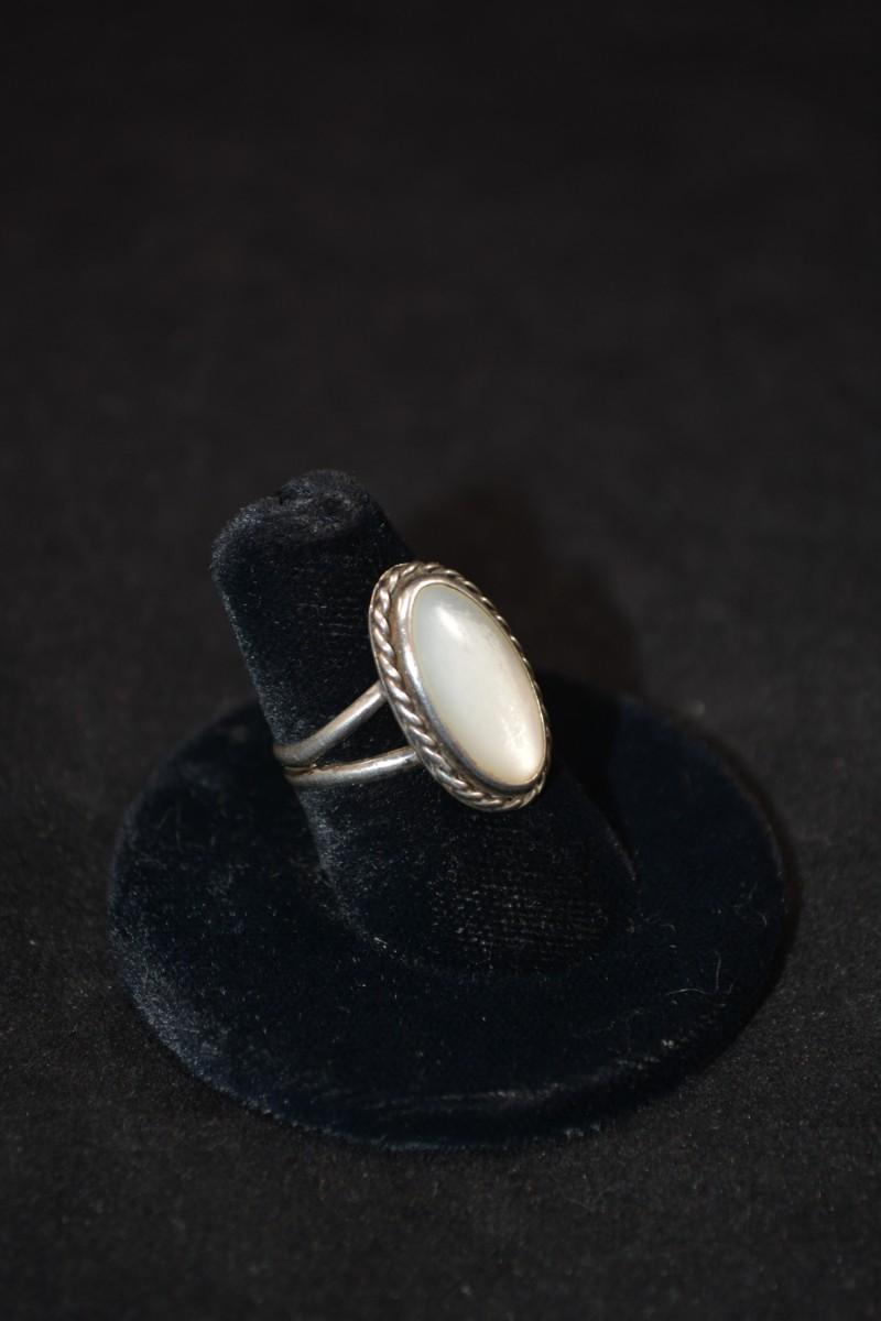 Vintage 925 Sterling Ring w/ Mother of Pearl Size 6.5, 7.4g