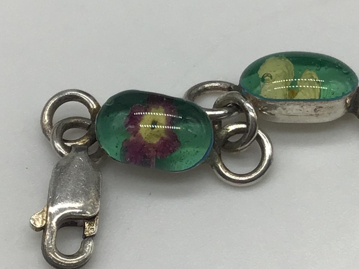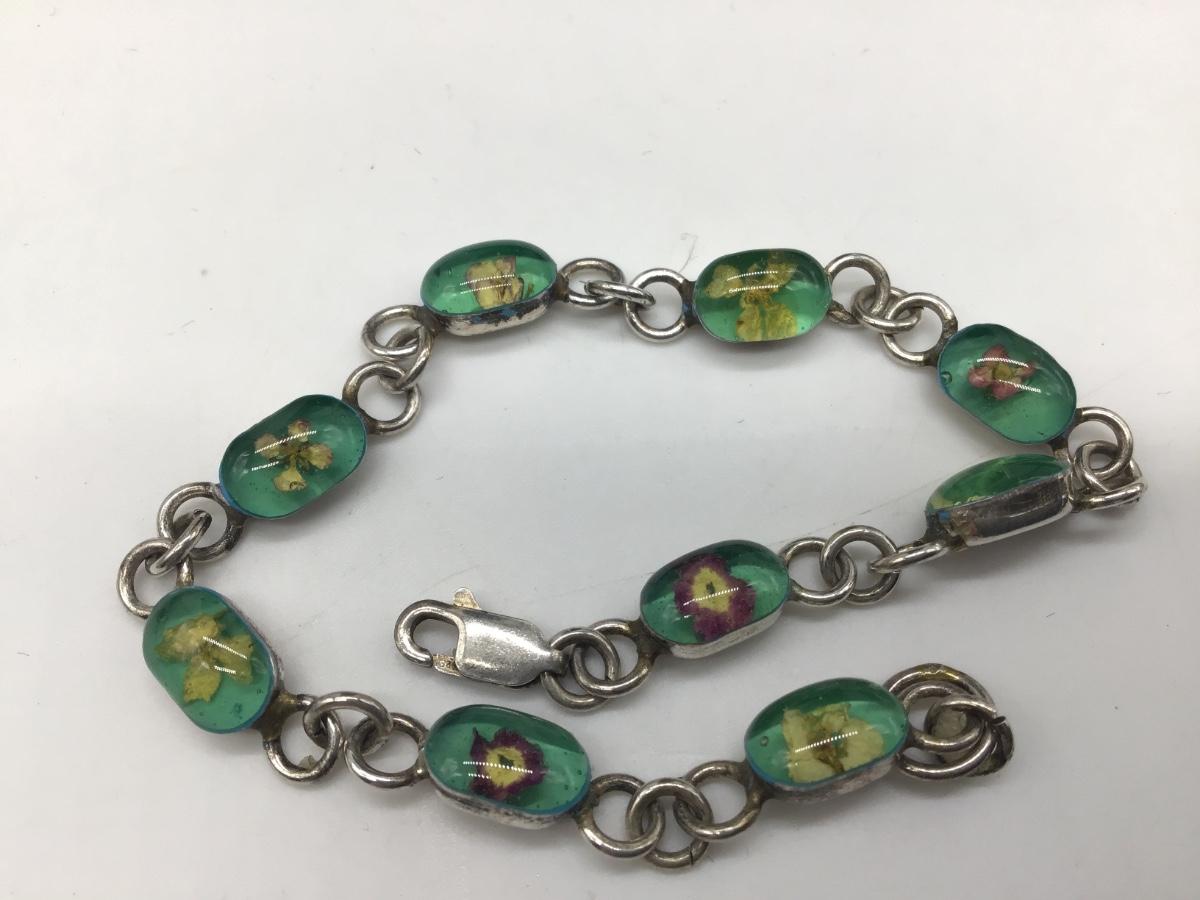 Vintage 925 Sterling Silver Dried Flower Resin Link Bracelet