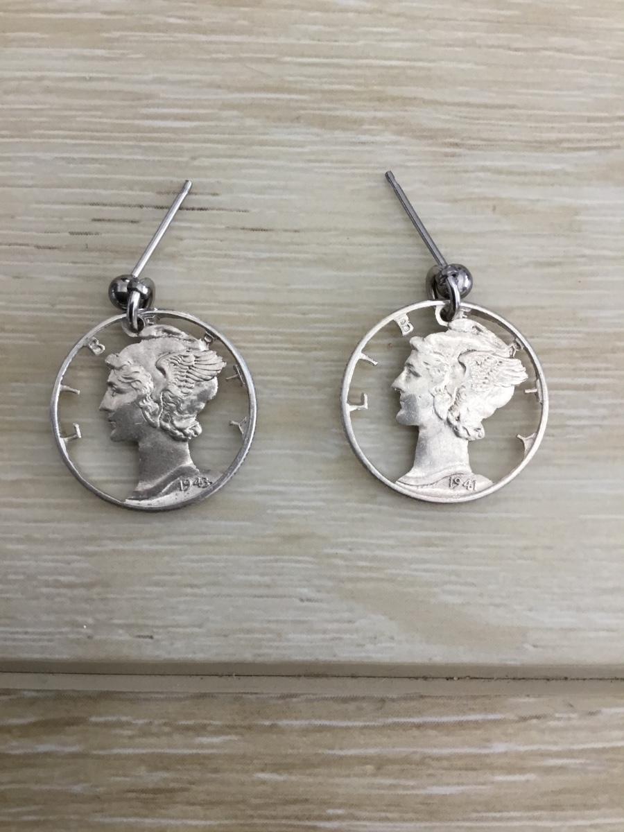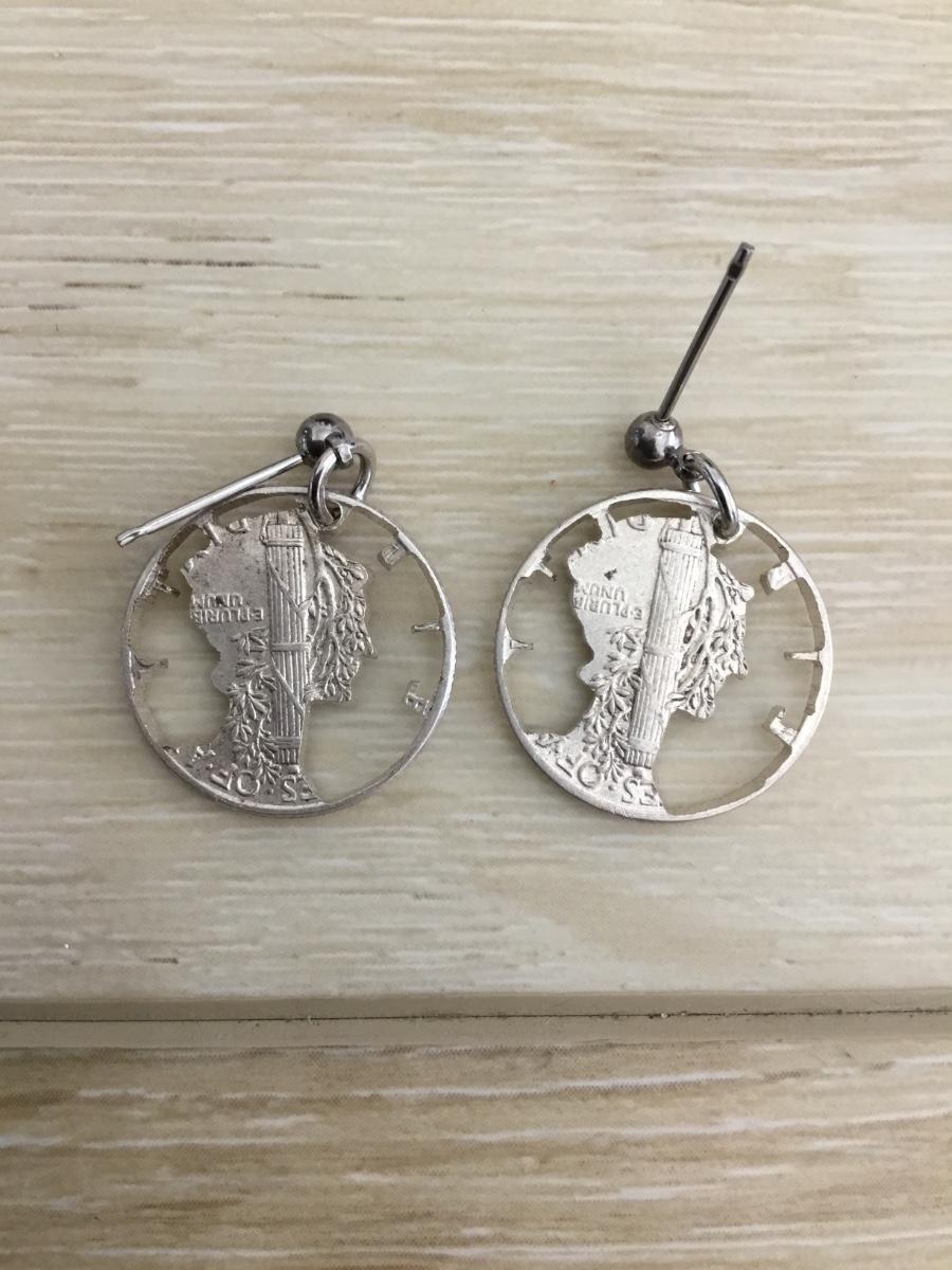 Vintage 925 sterling, silver liberty, coin, stud earrings