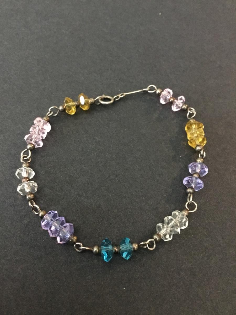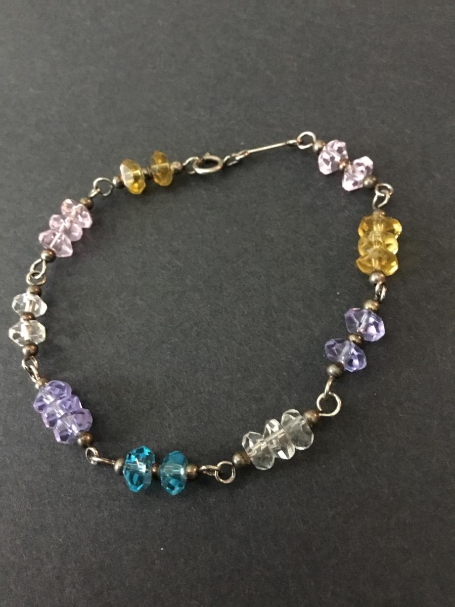 Vintage, 925 sterling silver multi colored crystal bead bracelet very pretty