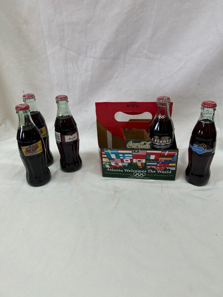 Vintage '96 Coca Cola Coke Carrier, '98 Elvis Coke Glass Bottle, '96 Las Vegas Bottle, Walmart 50 Anniversary '20 Bottle