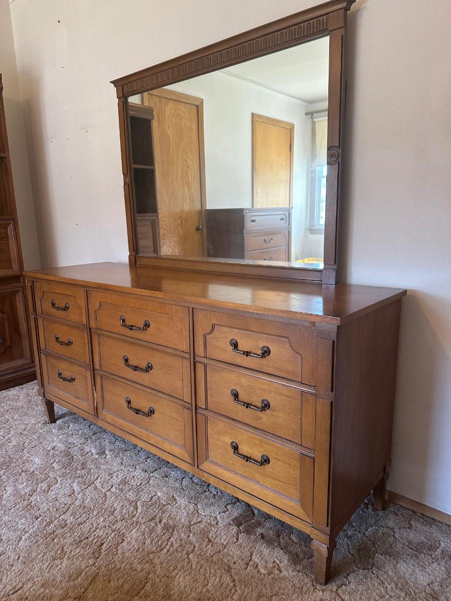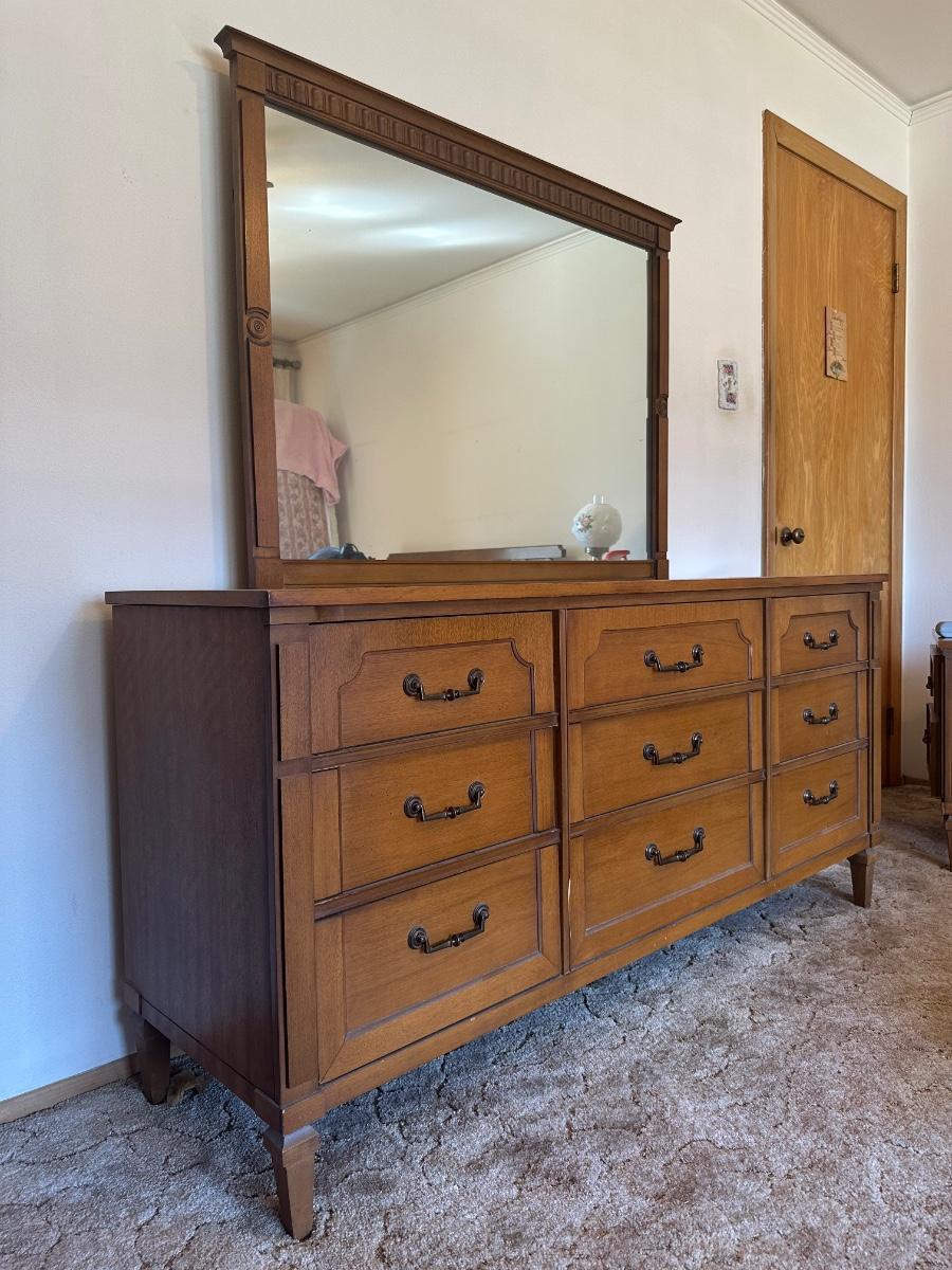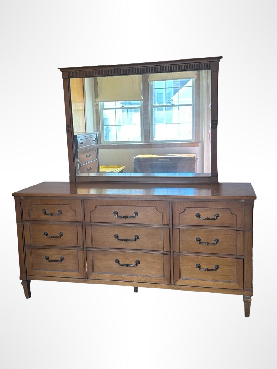 Vintage 9-Drawer Dresser with Attached Mirror