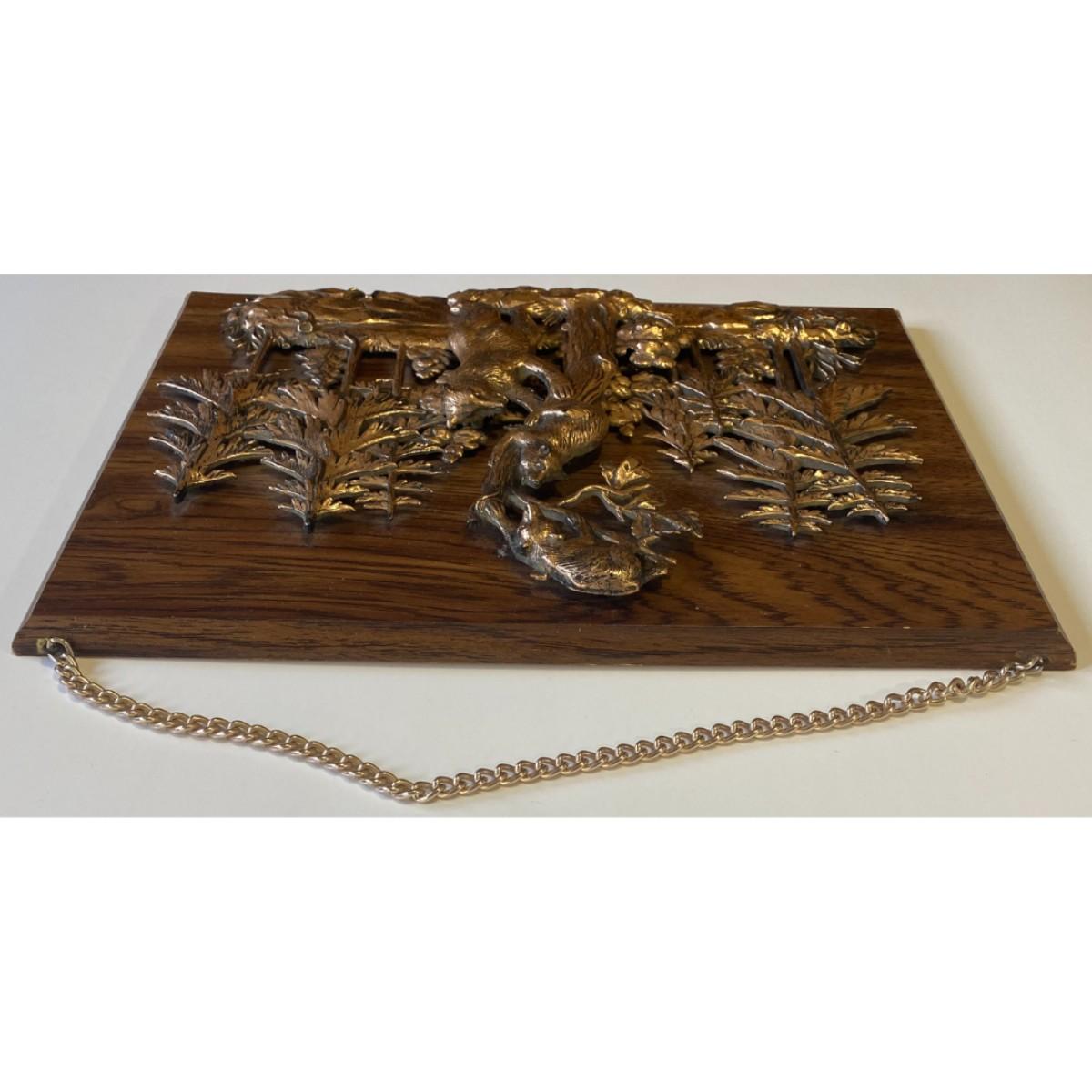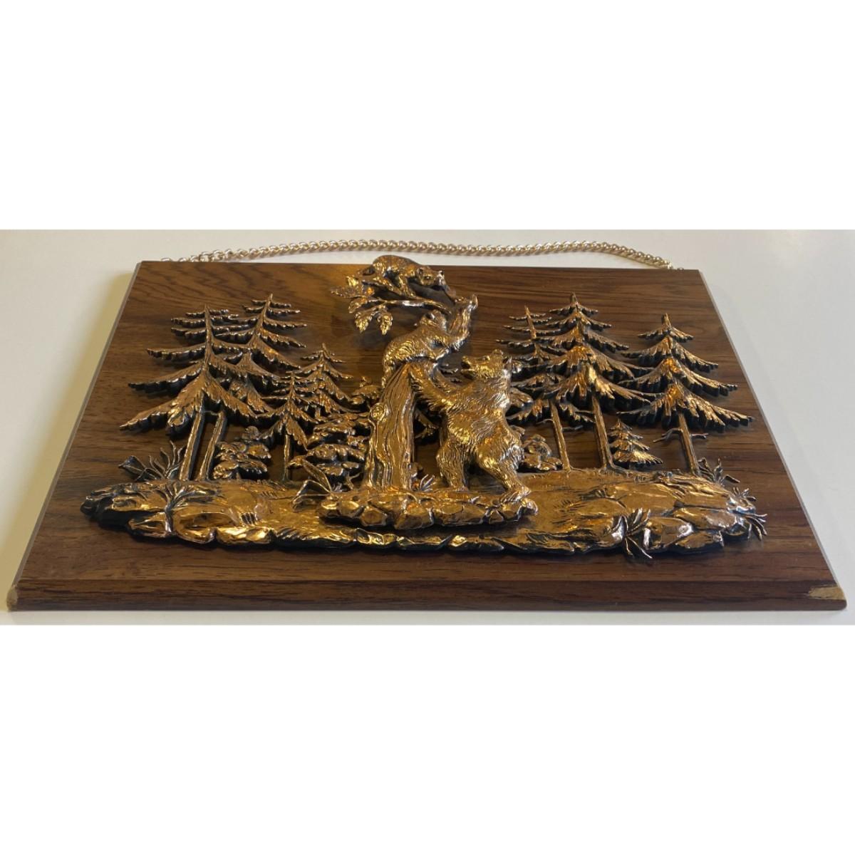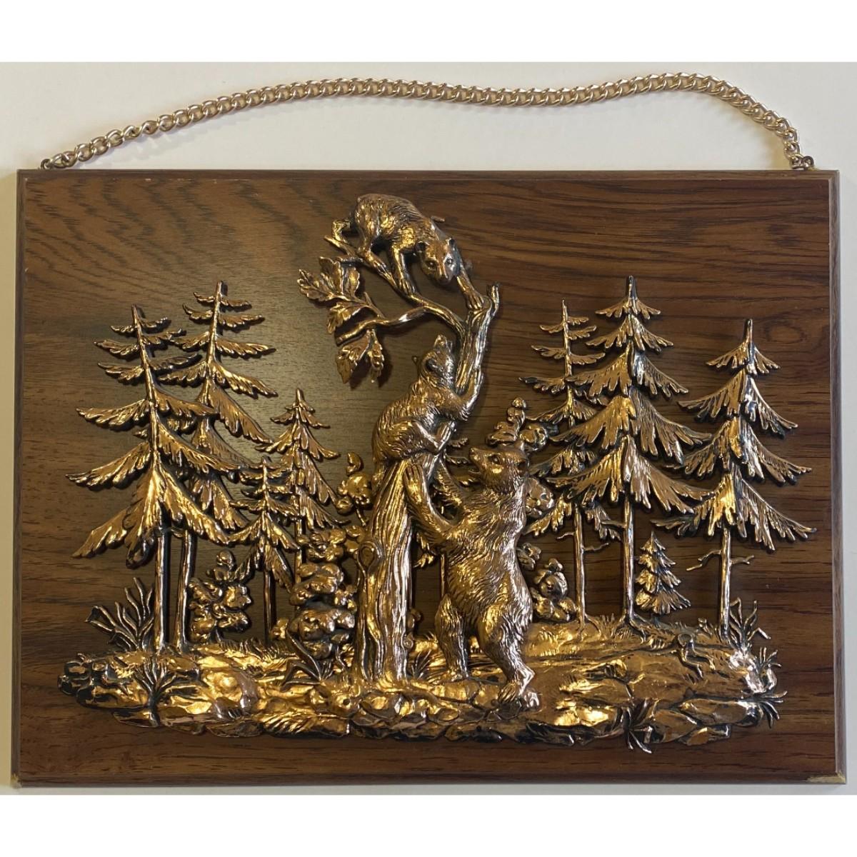 Vintage A & F Faux Copper Finish / Plastic Bear Wood Wall Plaque Made In Canada