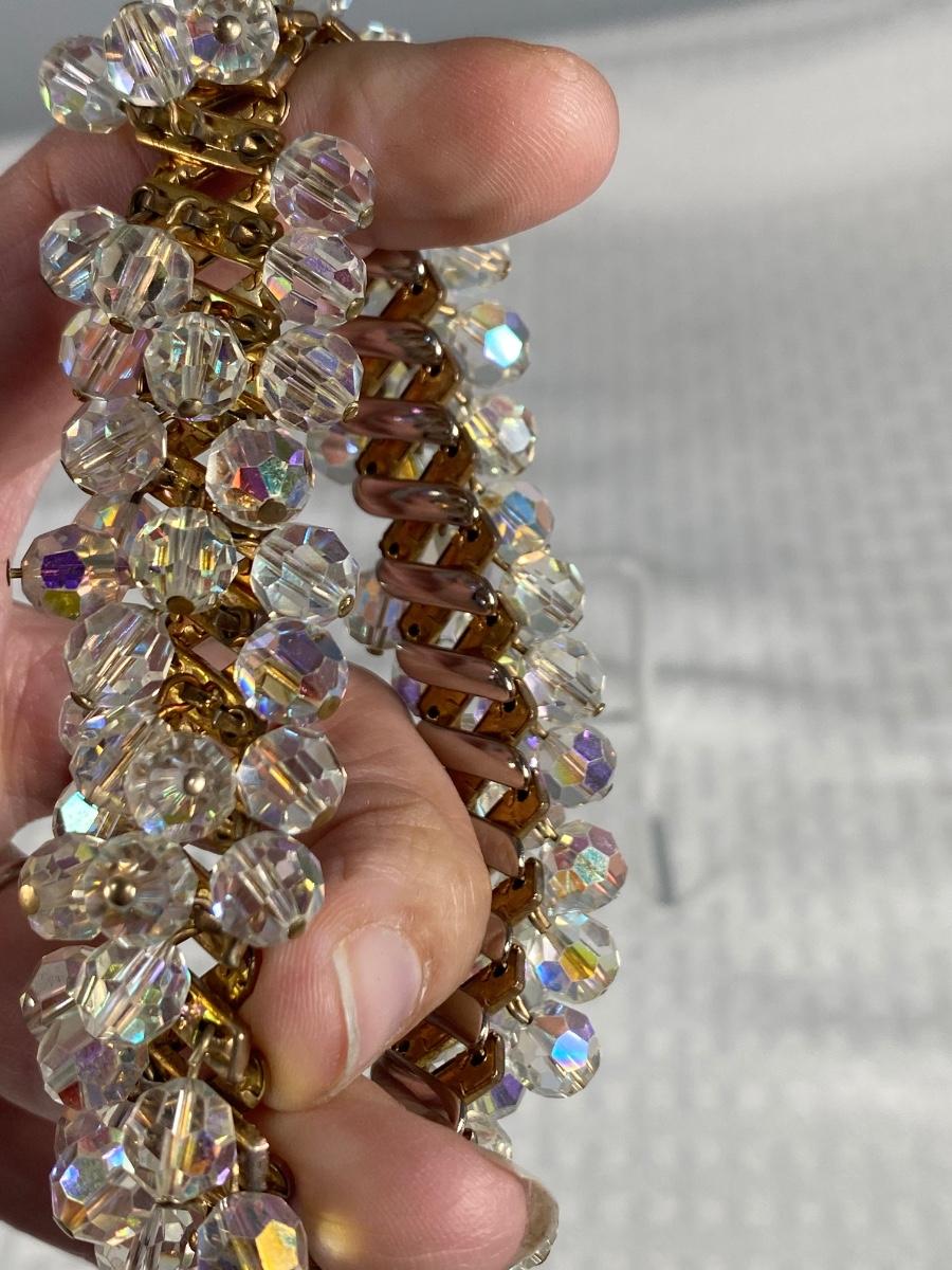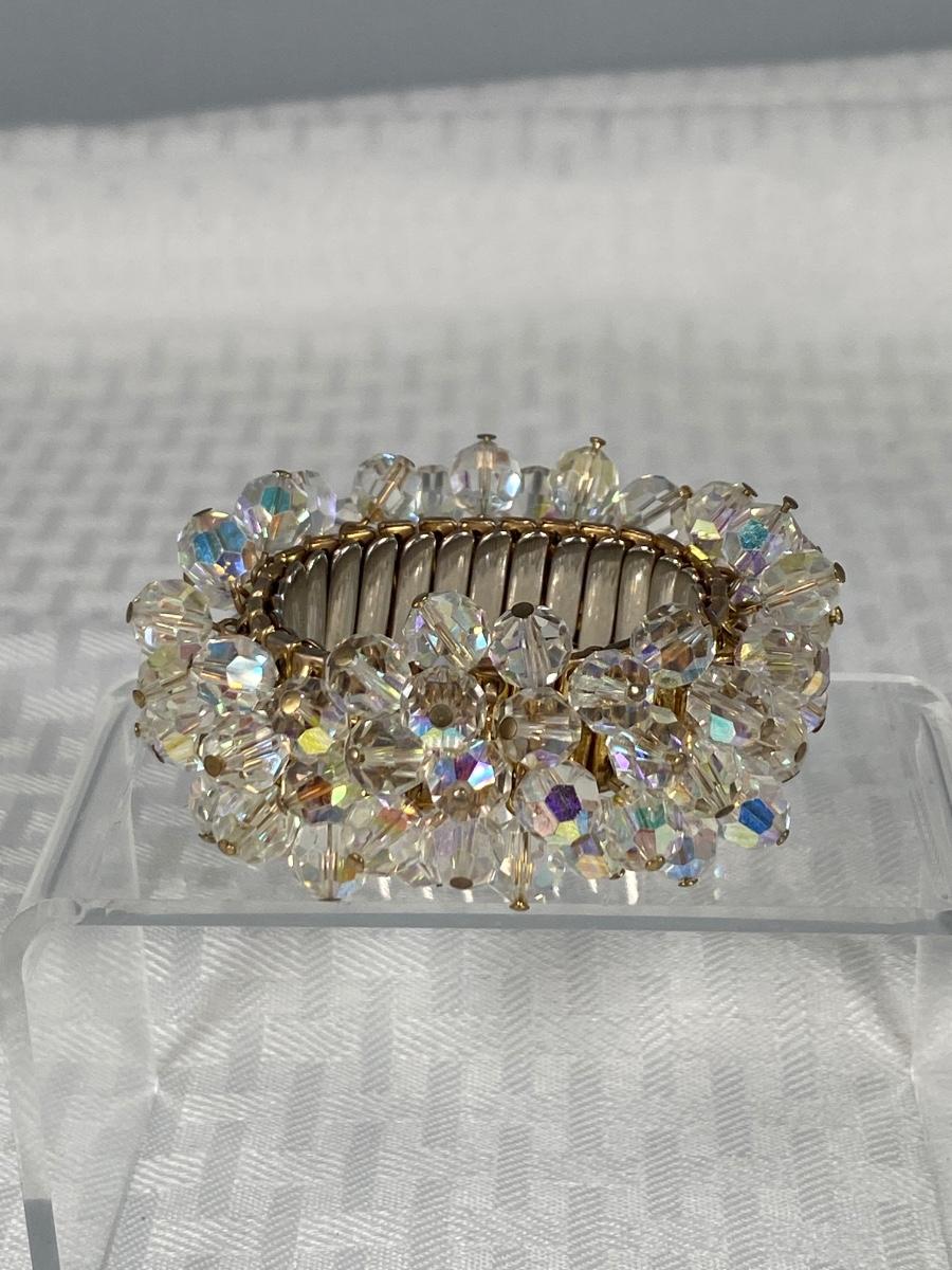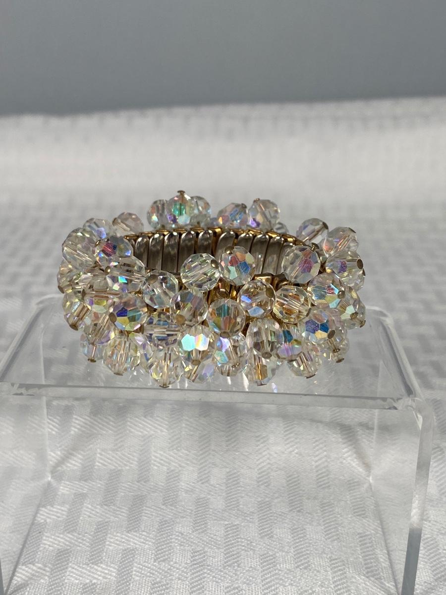 Vintage AB Glass Beaded Strech Bracelet Japan