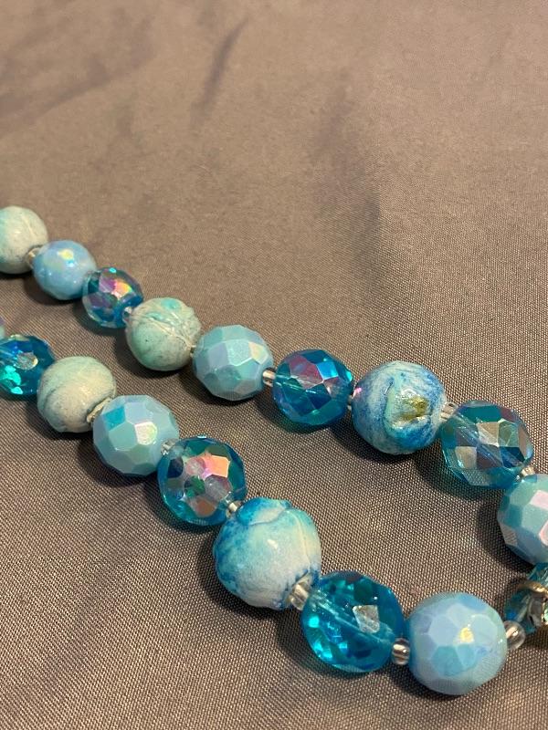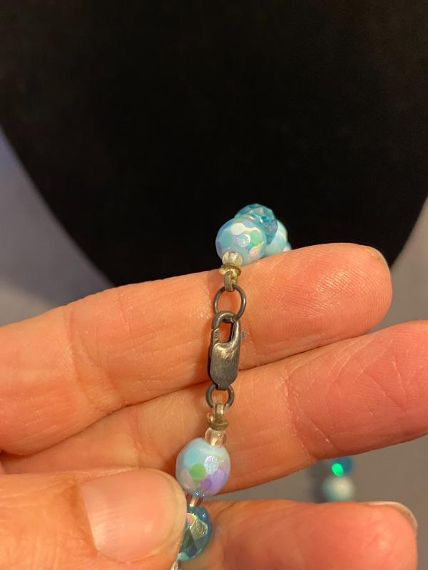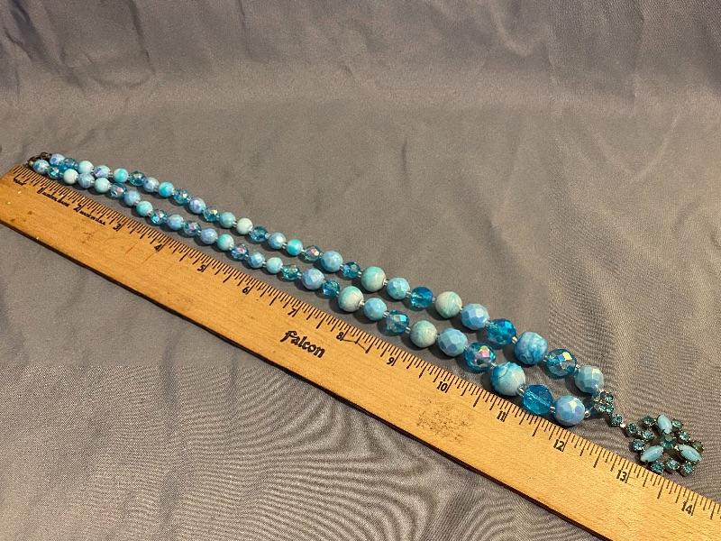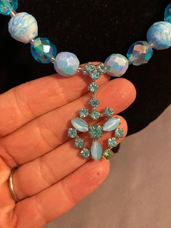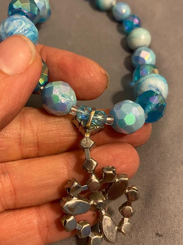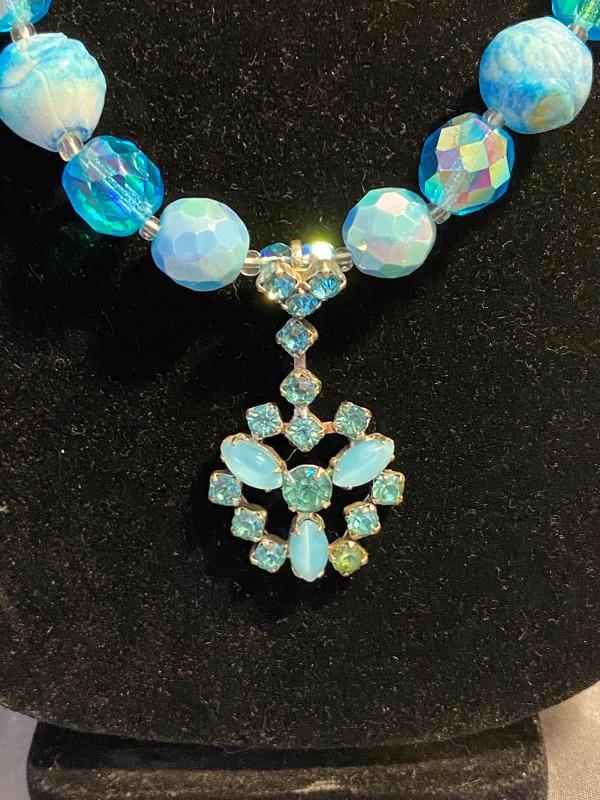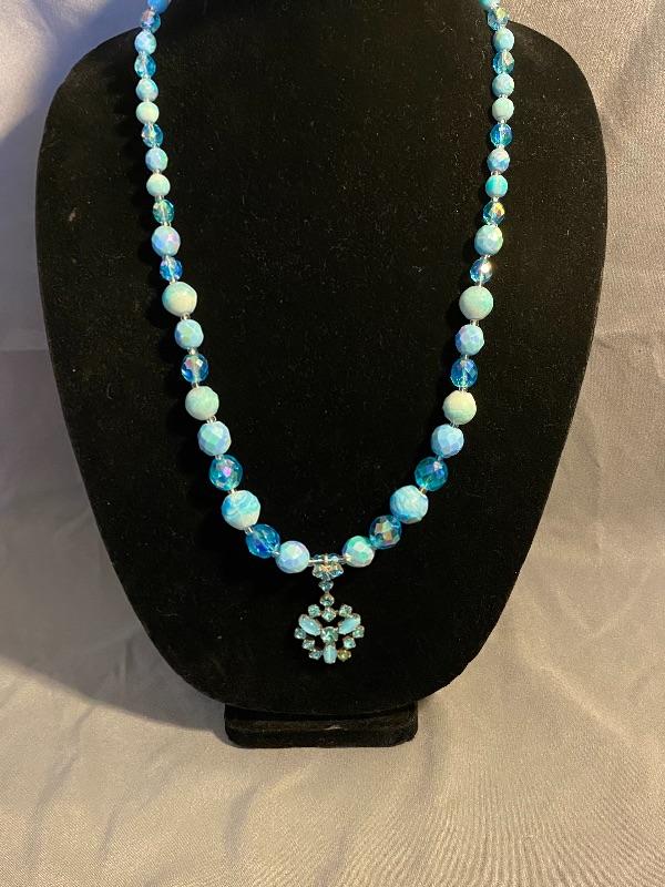Vintage AB Turquoise Beaded Necklace w/ Rhinestone Pendant YD#013-1120-00050
