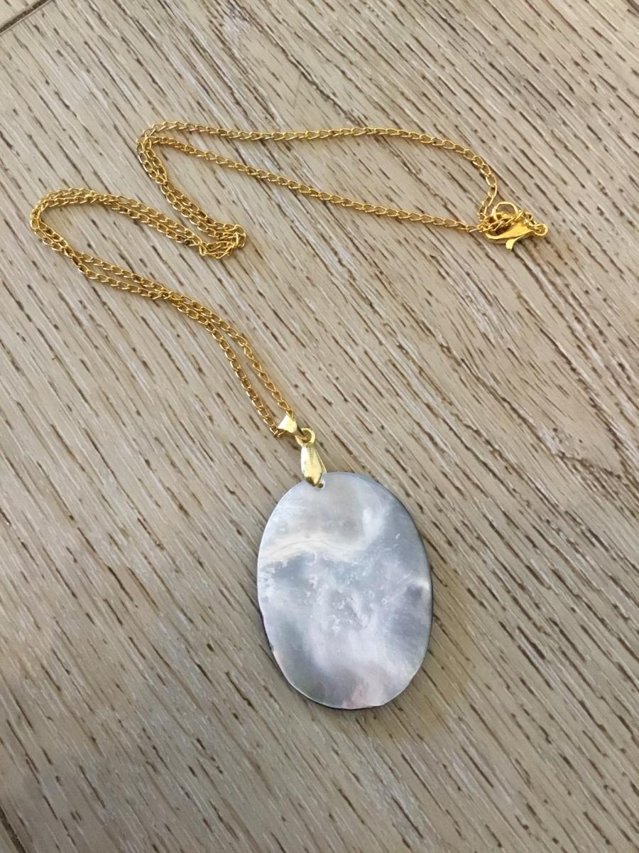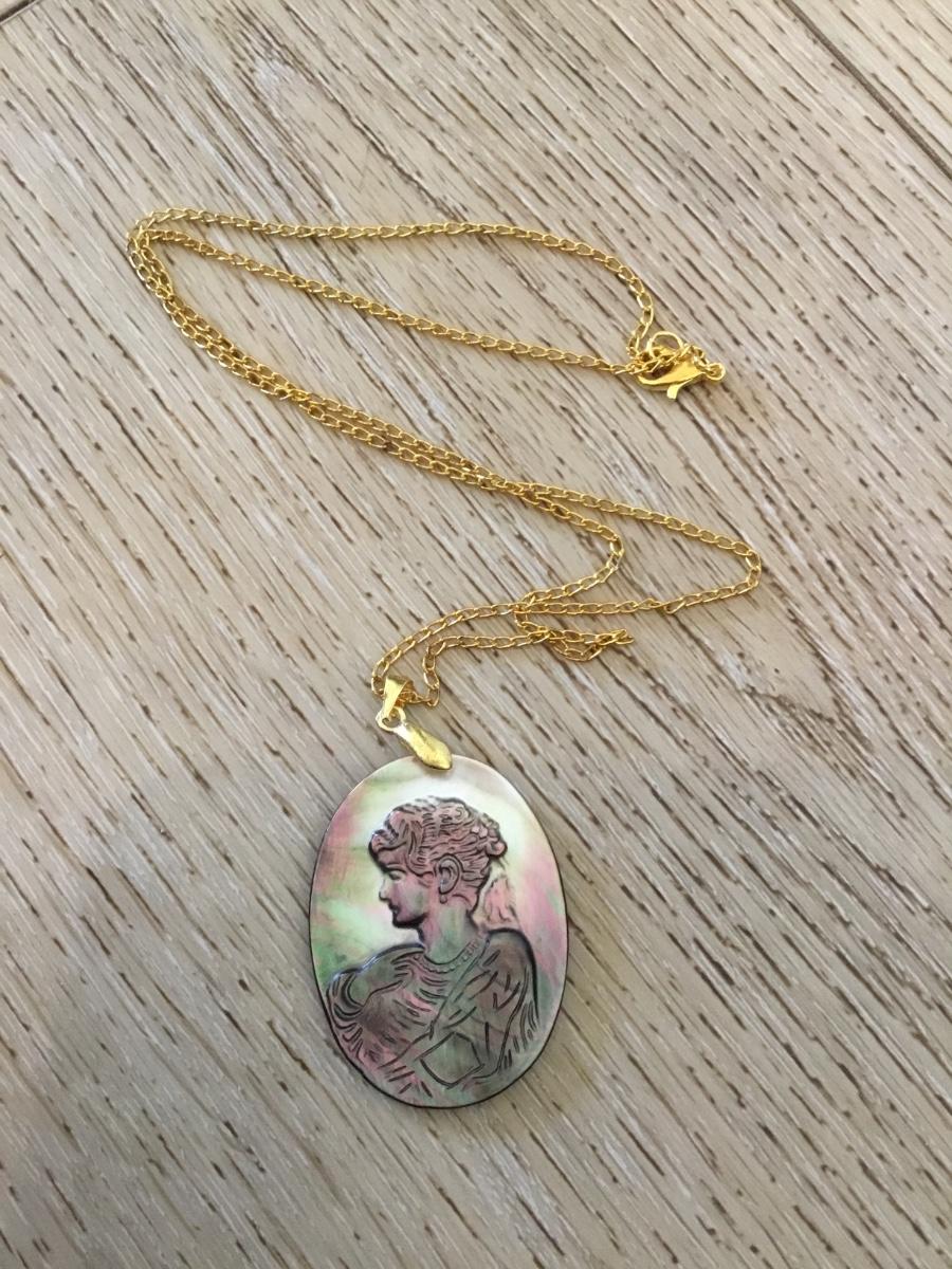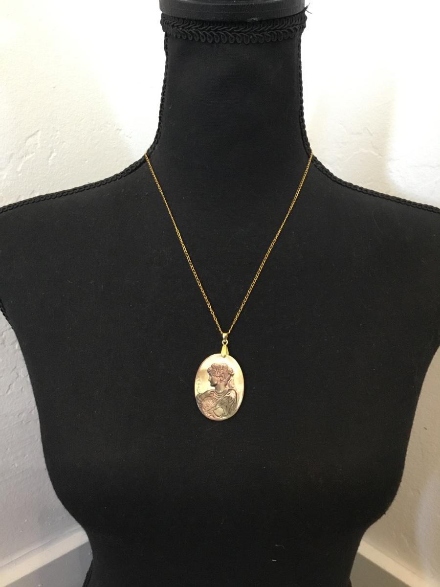 Vintage Abalone, seashell, cameo pendant necklace